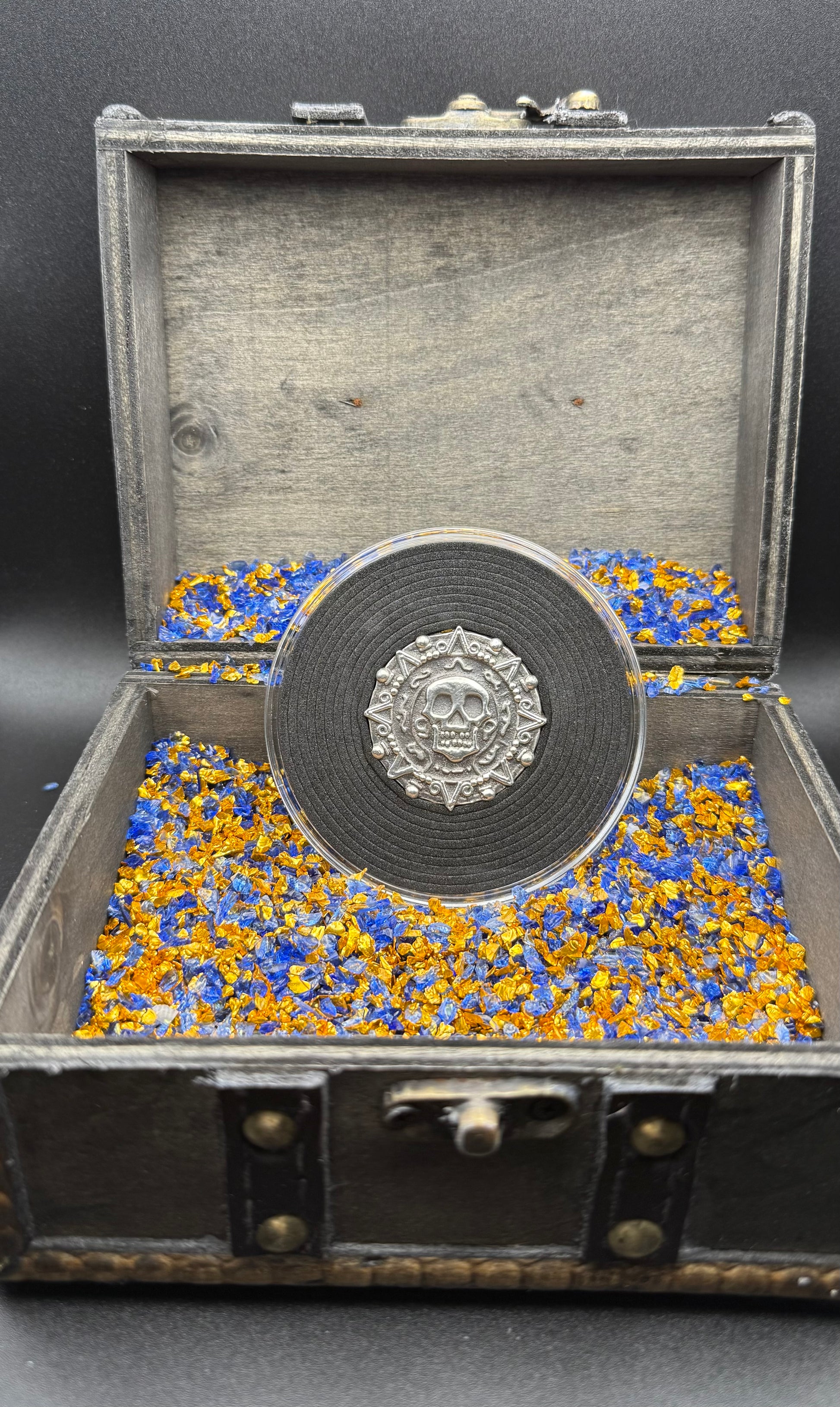 This precious piece comes sealed in a protective capsule (Acid Free / No PVC) protecting it from dust, dirt, and scratches. A custom wooden pirate treasure chest is included to secure your valuable pirate treasure. Certificate of authenticity is included.