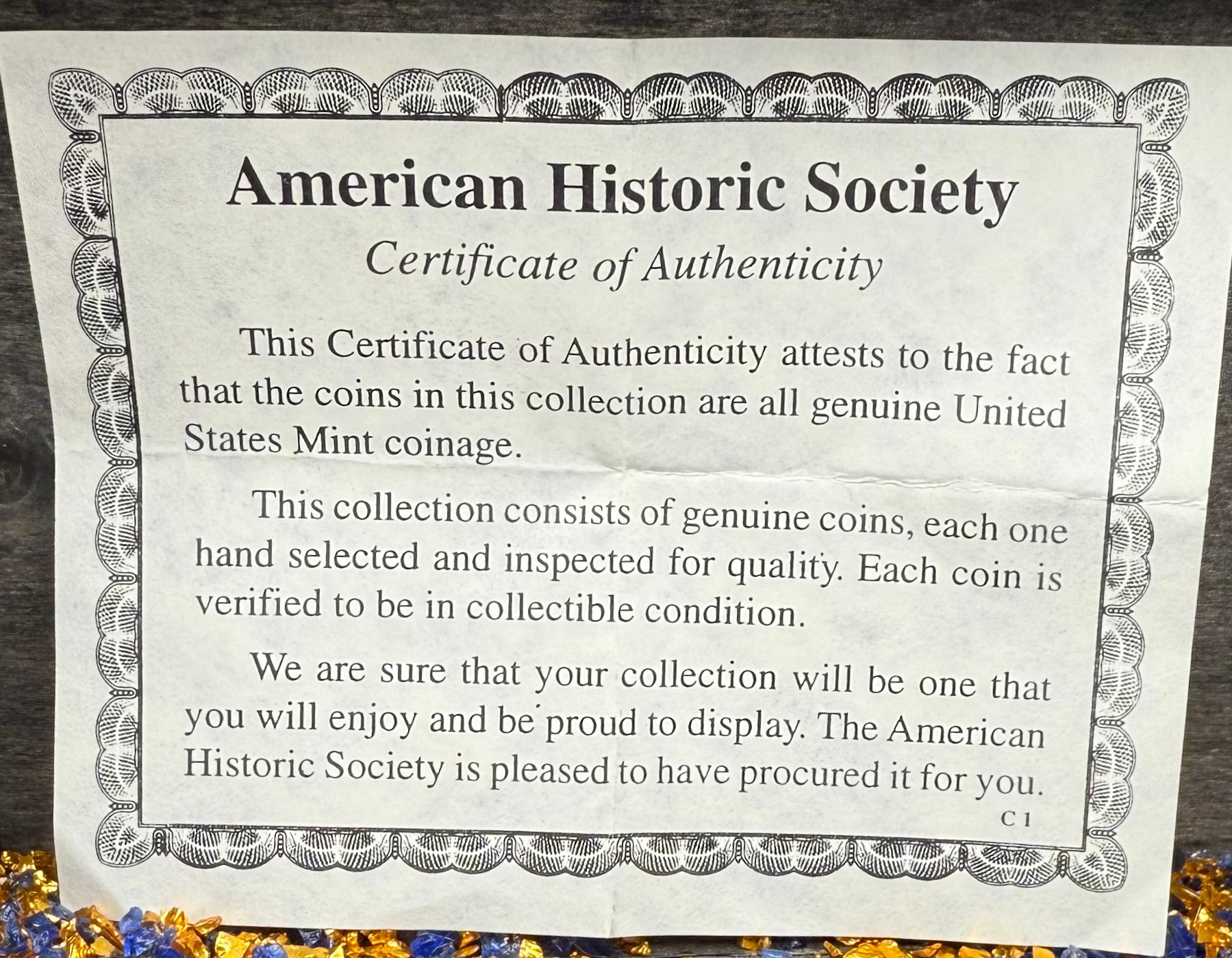 This resolute coin comes with a Certificate of Authenticity, a new spare ultra clear polypropylene capsule (Acid Free / No PVC) protecting it from dust, dirt, and scratches. This piece comes gift wrapped and shipped in a mini coin box, and a larger wooden treasure box great for gift giving. Acrylic stand and acrylic colored stones are not included.