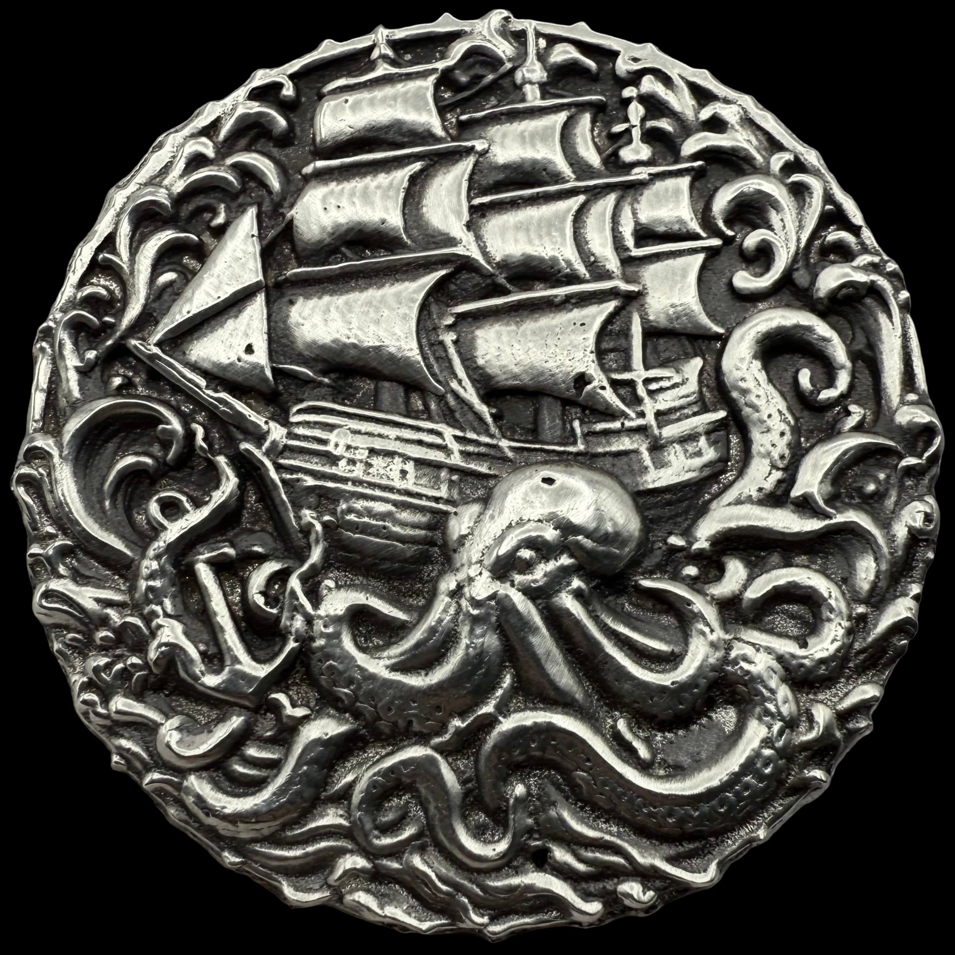 'The Kraken Attack' Sea Monster 2025 2.7 Troy Ounce .999 Fine Silver Round Hand Crafted Antique Finish Includes Wood Treasure Chest, Capsule & COA Mint Condition Limited Edition (1 of 50)