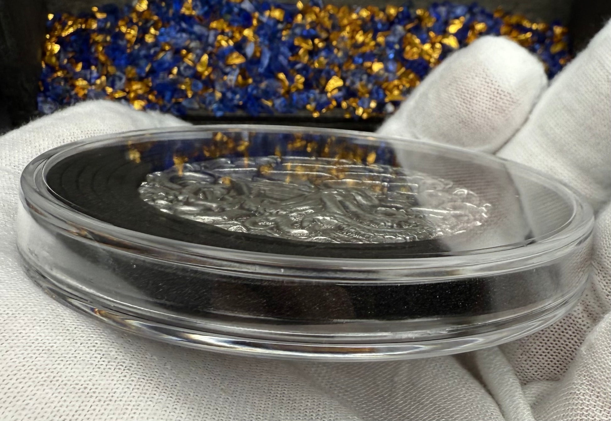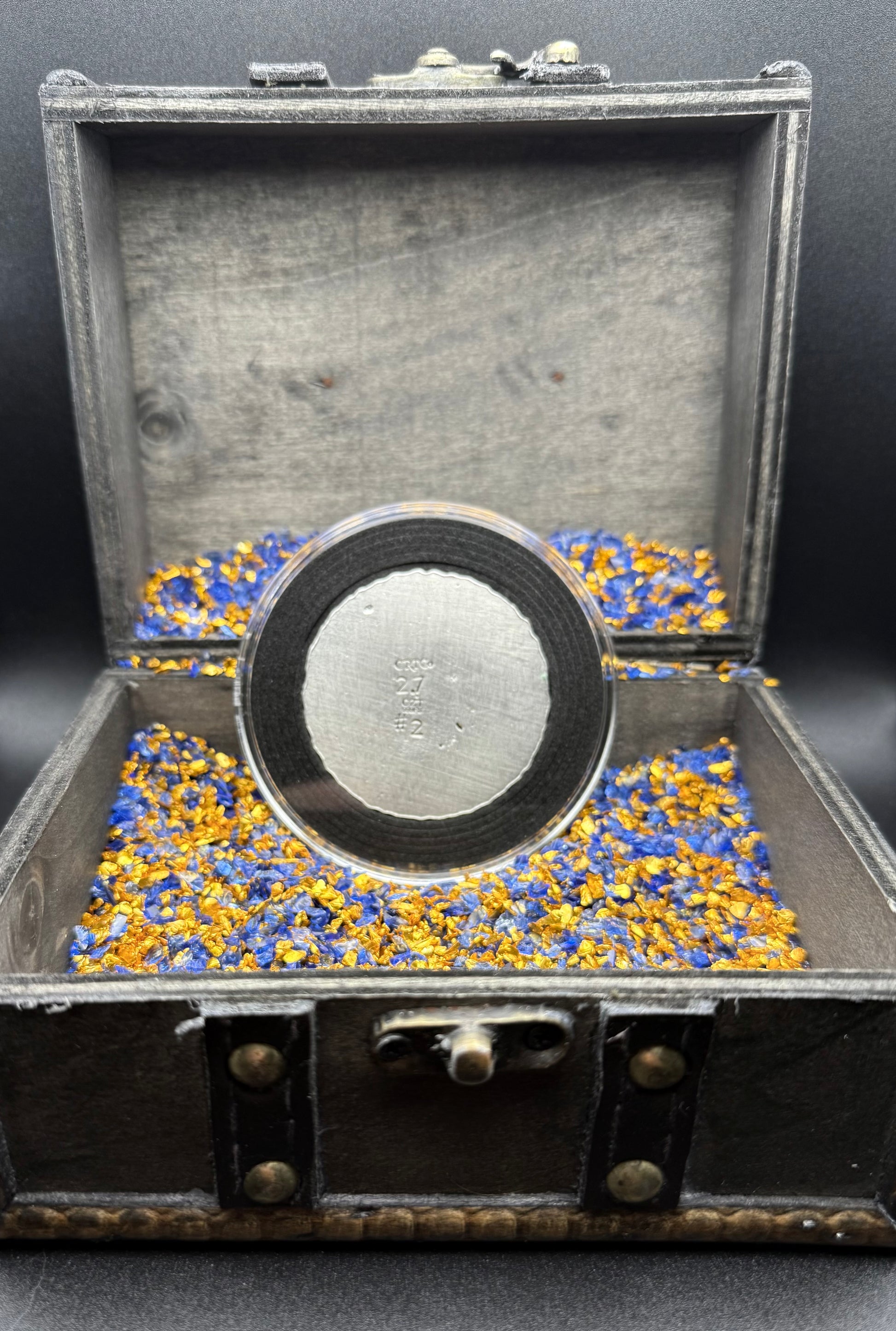 This precious piece comes sealed in a protective capsule (Acid Free / No PVC) protecting it from dust, dirt, and scratches. A custom wooden pirate treasure chest is included to secure your valuable pirate treasure. Certificate of authenticity is included.