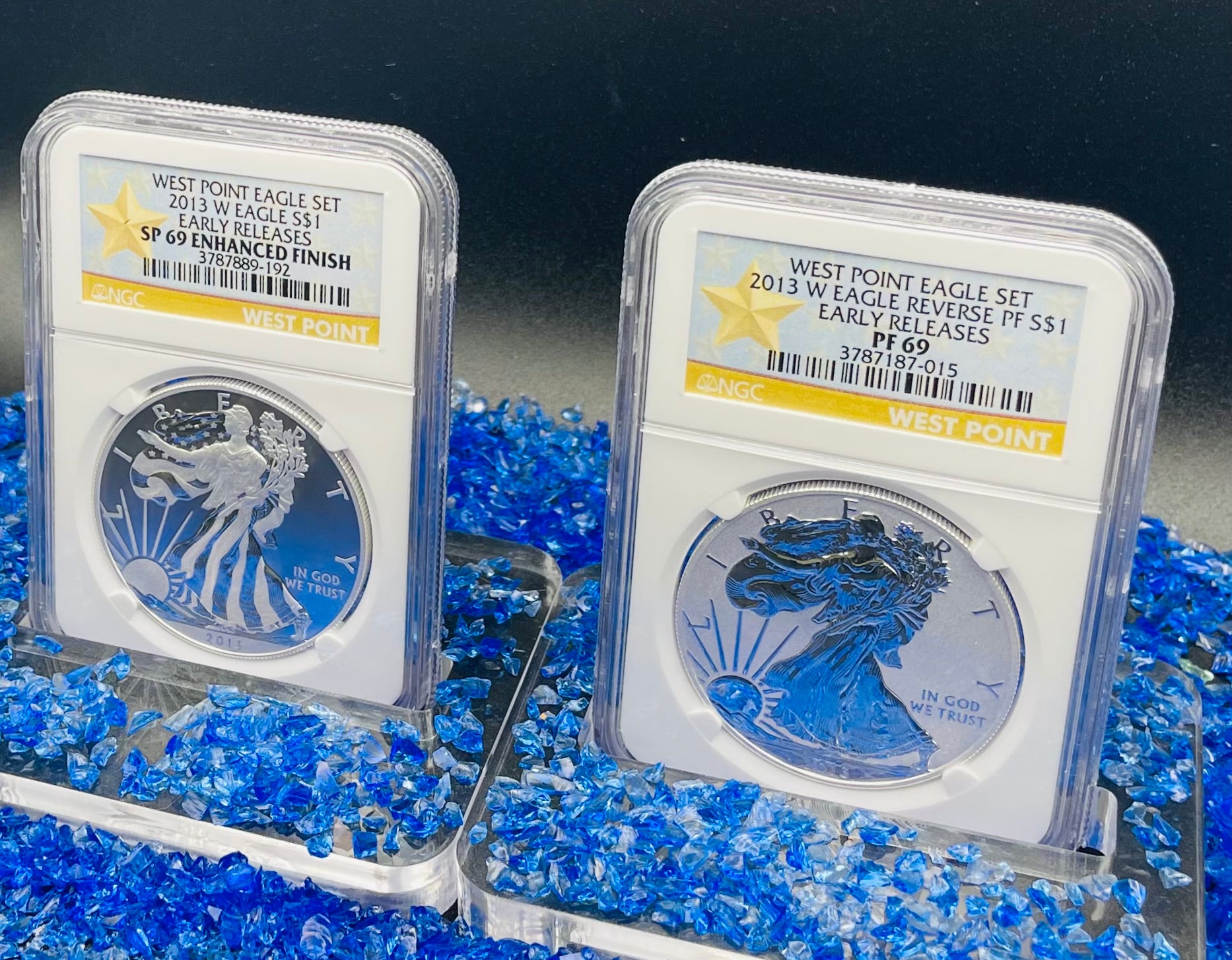 Reverse Proof & Enhanced Finish (2 Coin Set) 2013 (W) $1 American Silver Eagle NGC PF69 White Core Holder West Point Gold Star Label