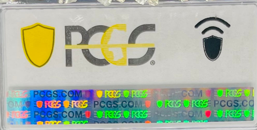 The holder has been micro chipped by PCGS for authentication validation purposes. We tapped the holder against the phone using the PCGS app revealing a green validation notification as displayed in the listing photos.