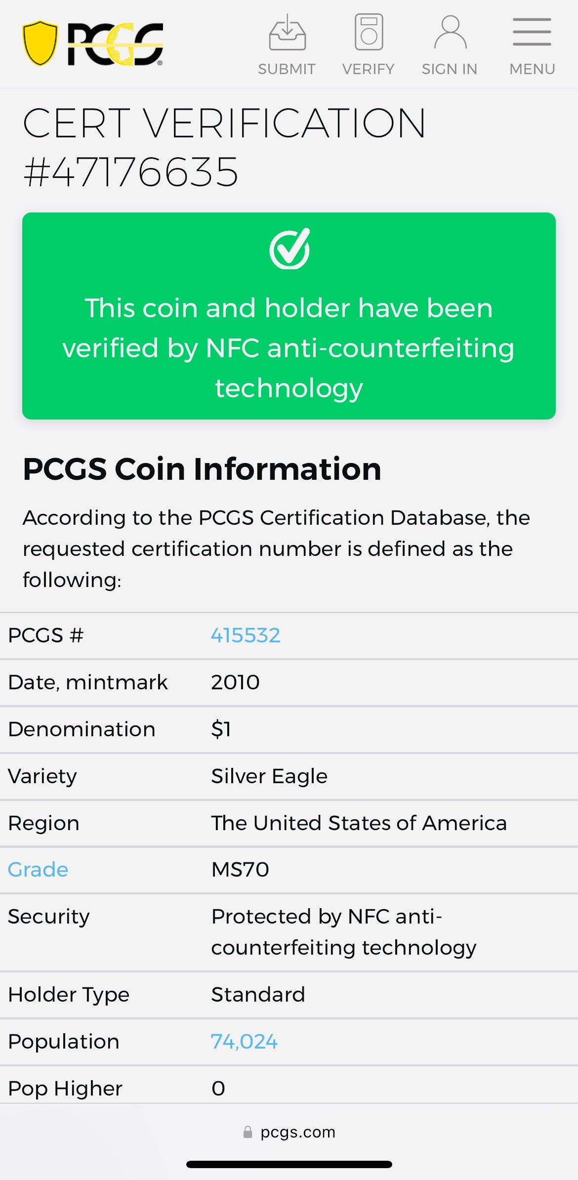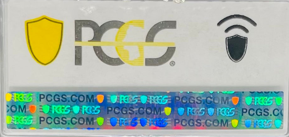 The holder has been micro chipped by PCGS for authentication validation purposes. We tapped the holder against the phone using the PCGS app revealing a green validation notification as displayed in the listing photos.