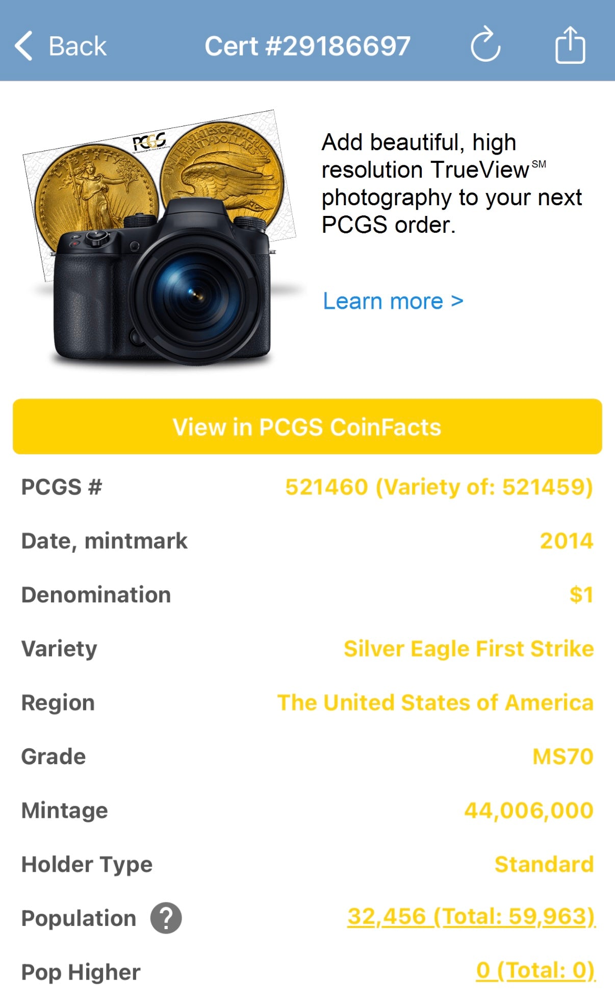 2014 $1 (W) American Silver Eagle PCGS MS70 First Strike Gold Foil Label Rare!