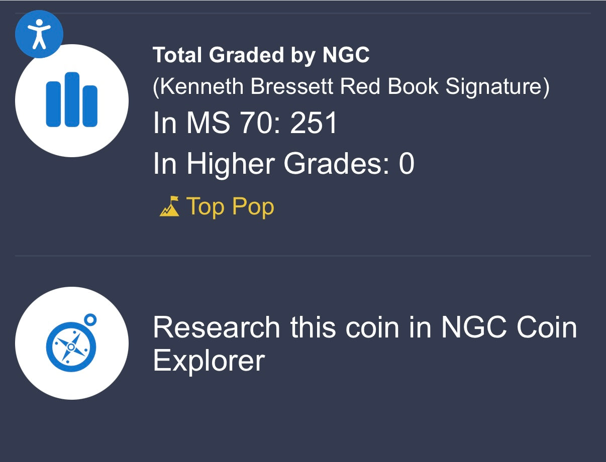 2017 $1 American Silver Eagle NGC MS70 FDOI Kenneth Bressett Signed Red Gold Label Mint Condition (1 of 251)
