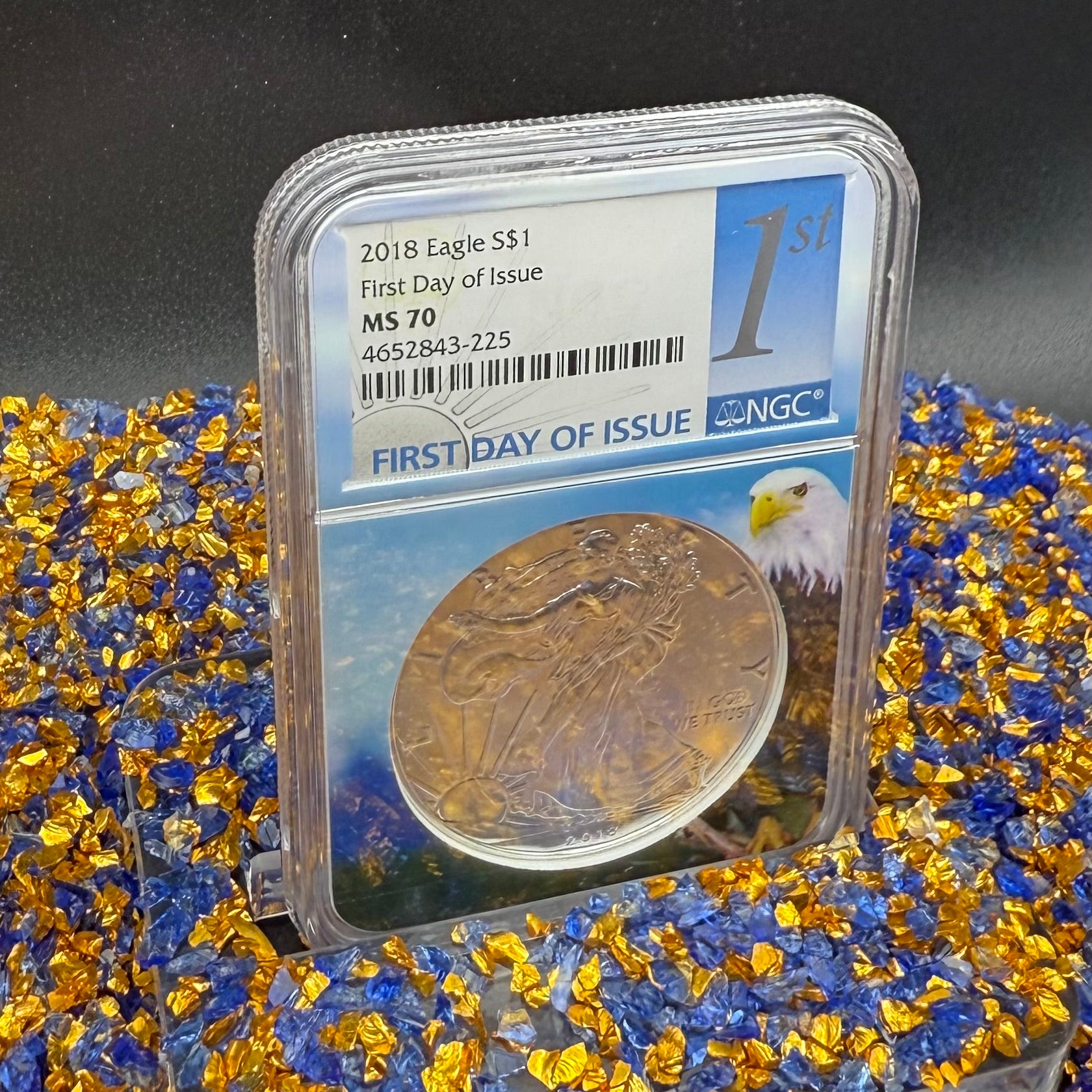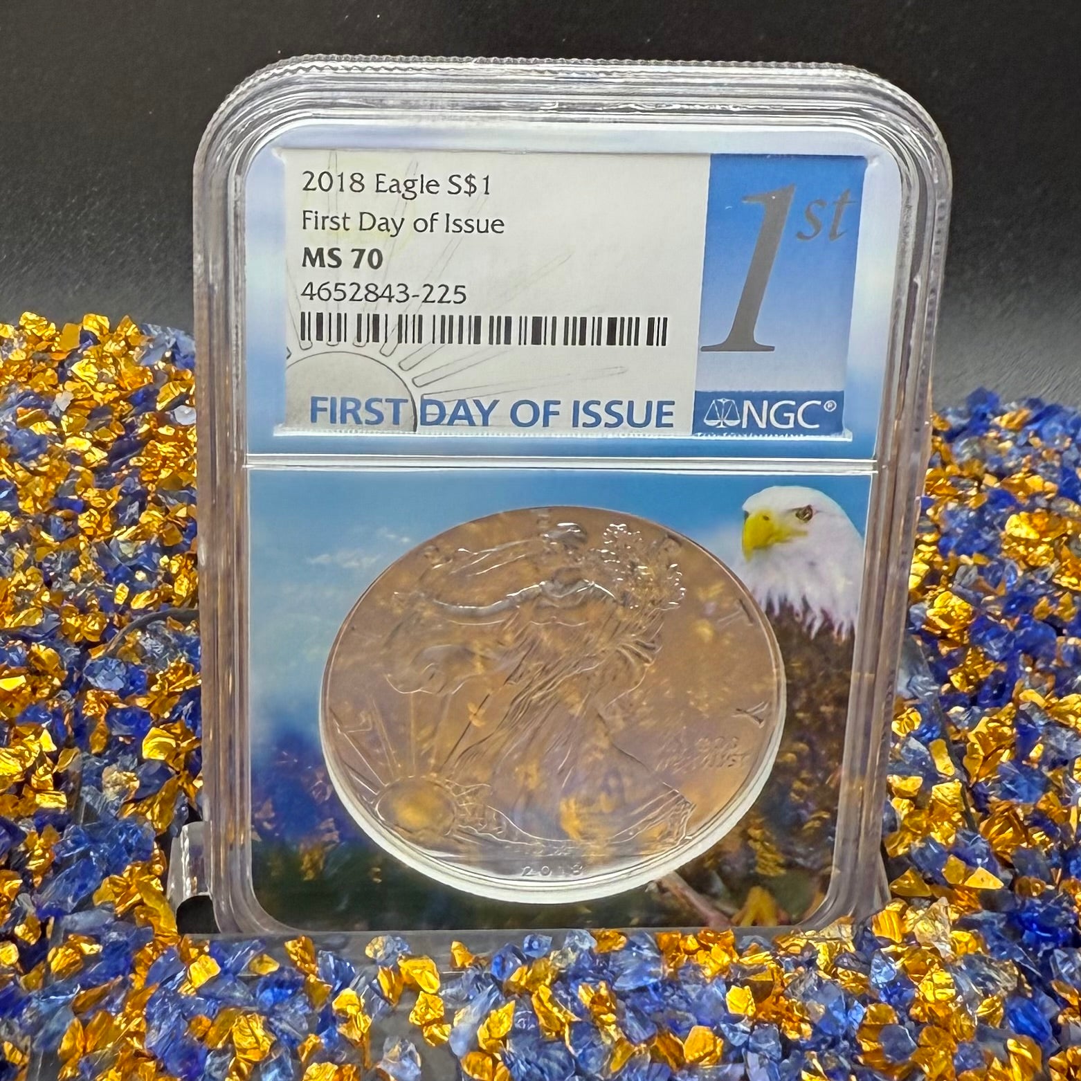 2018 $1 American Silver Eagle NGC MS70 First Day of Issue Eagle Holder Mint Condition (1 of 13,313)