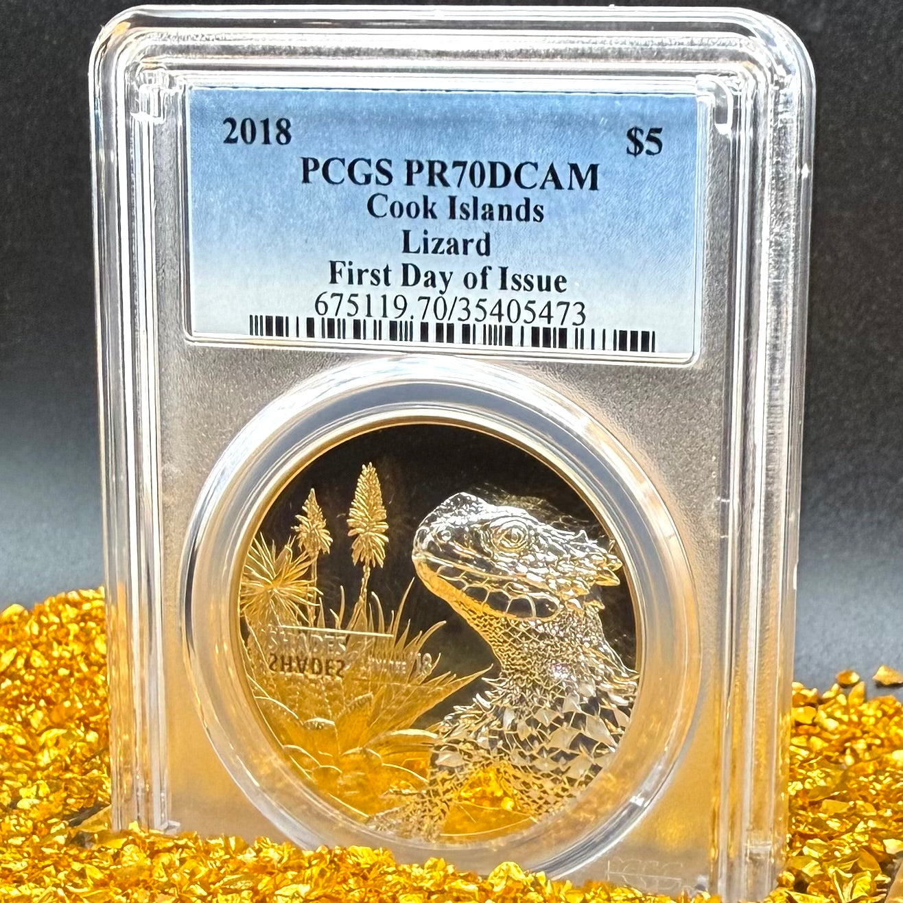 2018 Cook Islands Silver Dollar $5 PCGS FDOI PR70DCAM South African Sungazer Lizard - 24K Gold (1 of 91)