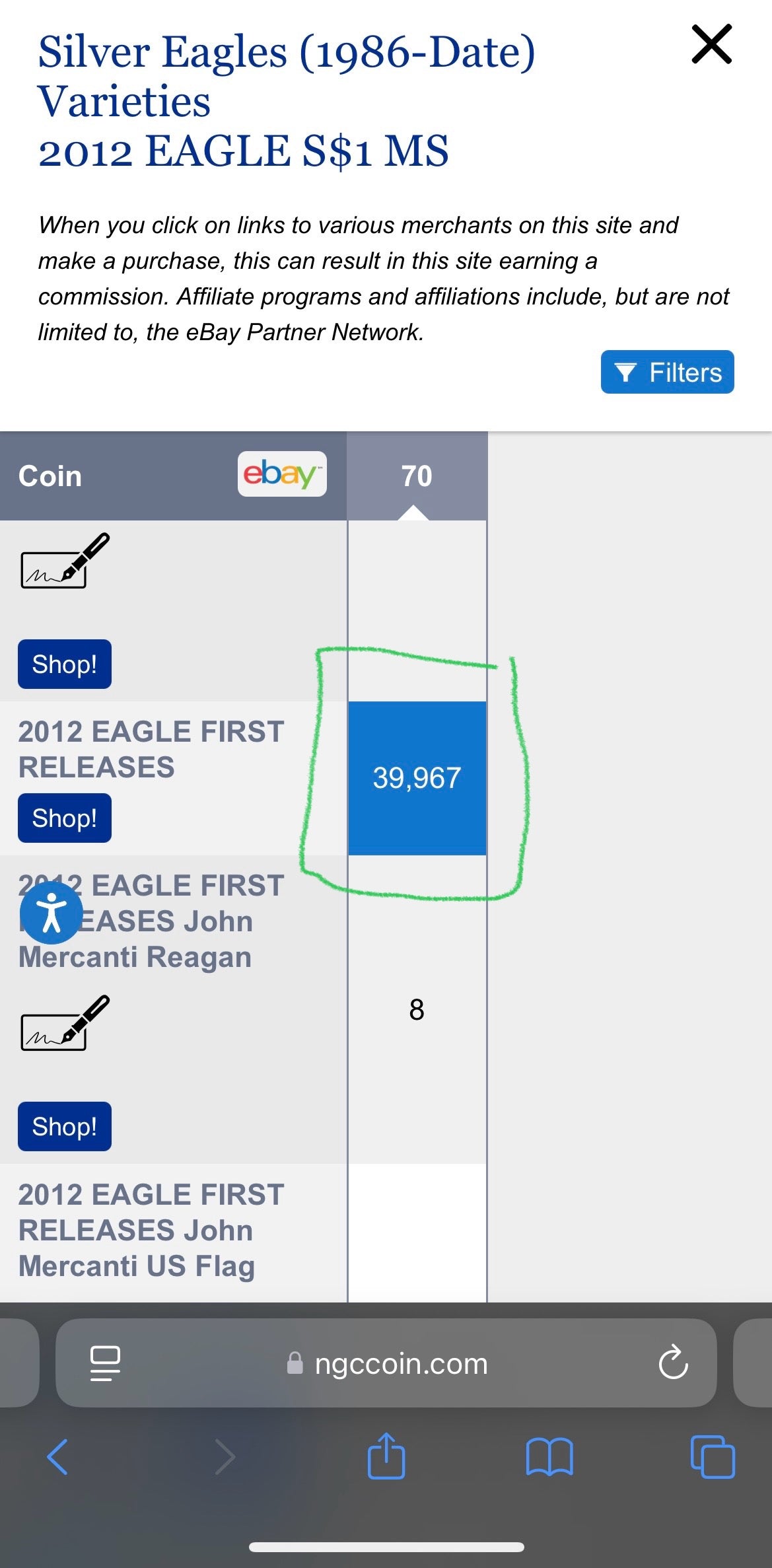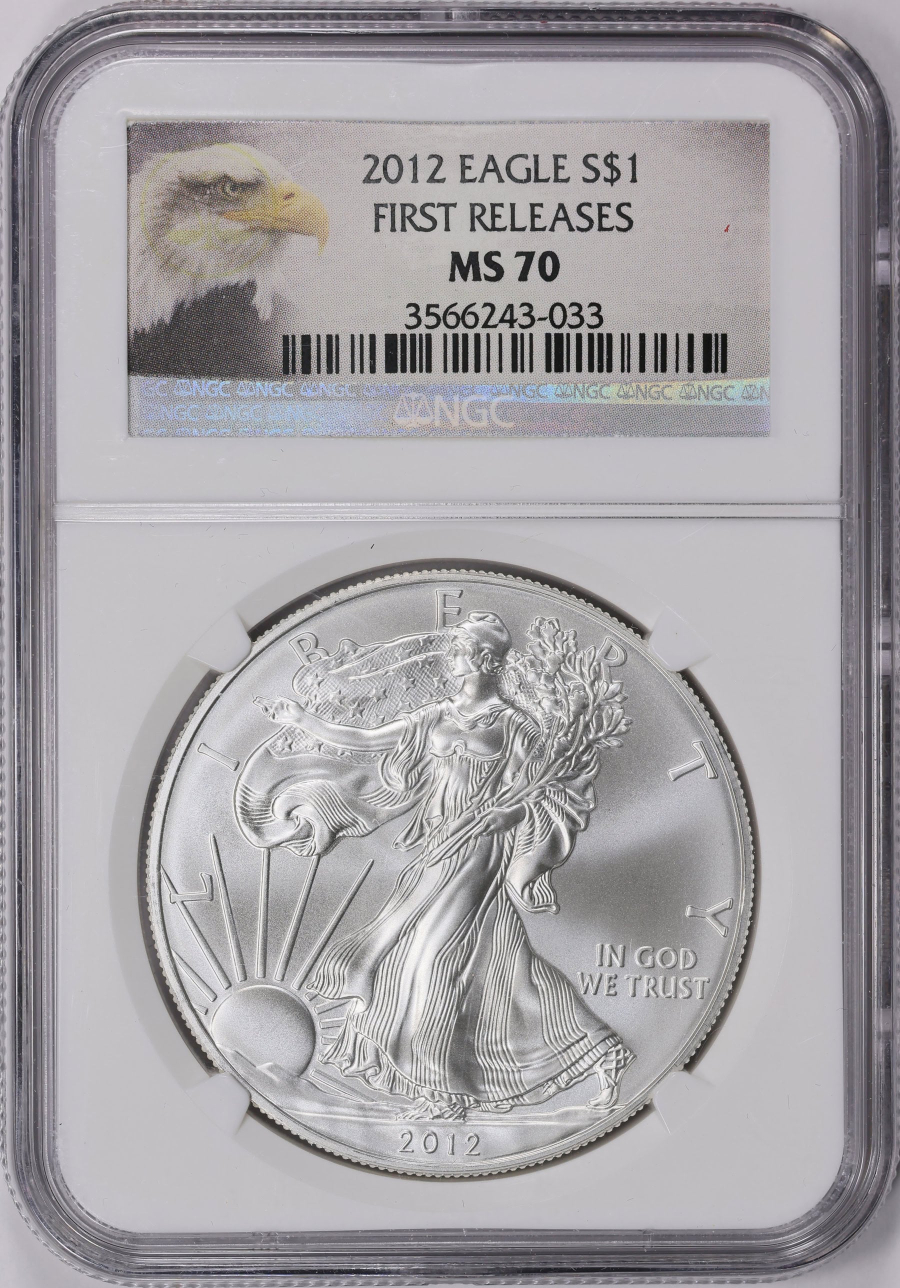 2012 $1 American Silver Eagle NGC MS70 First Releases American Eagle Label (1 of 39,967)
