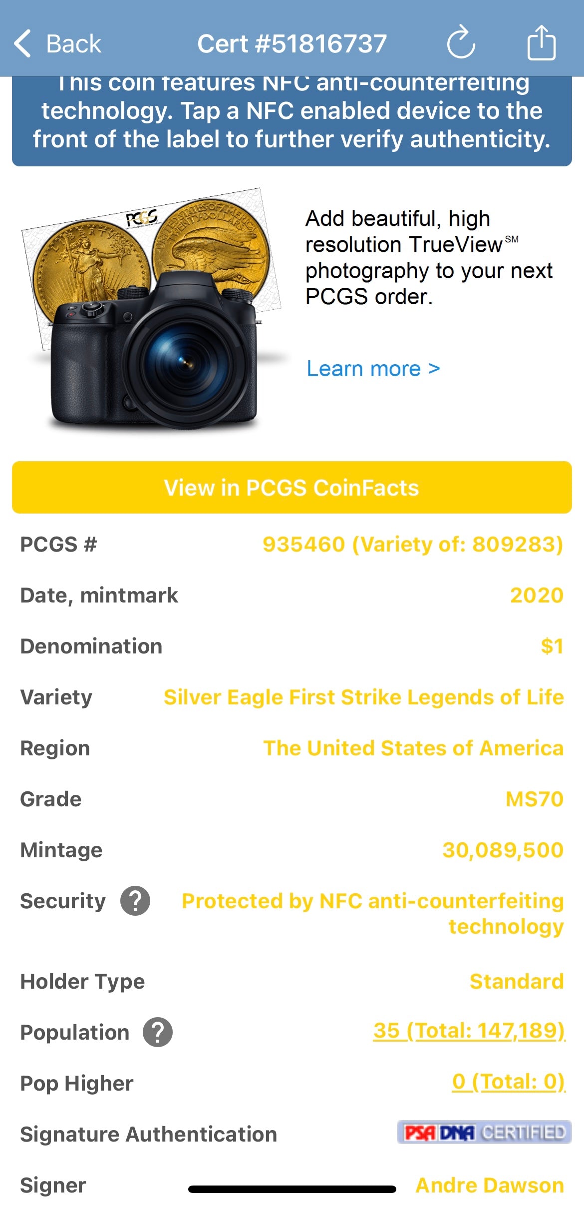 The holder has been micro chipped by PCGS for authentication validation purposes. We tapped the holder against the phone using the PCGS app revealing a green validation notification as displayed in the listing photos.