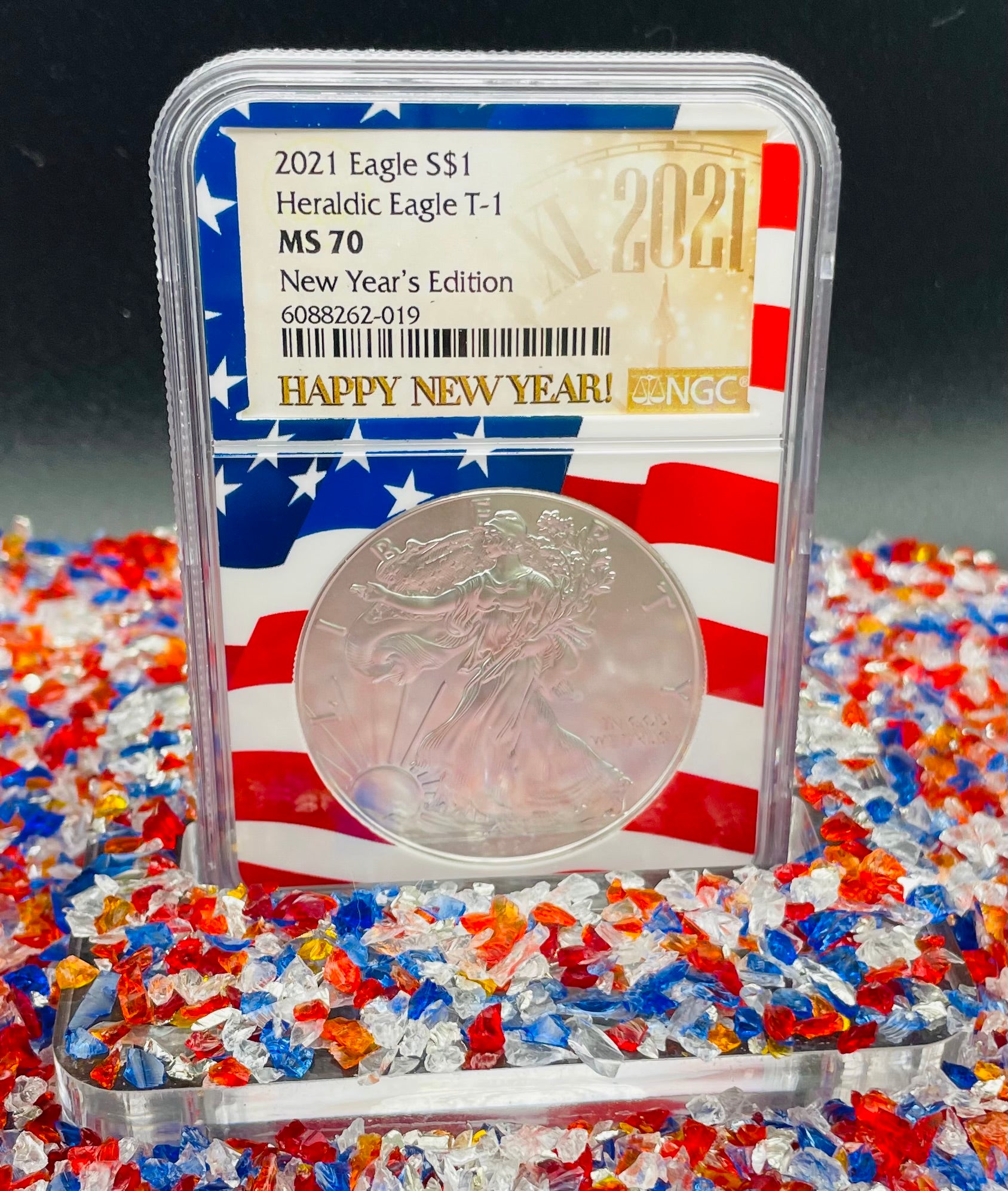 2021 $1 American Silver Eagle NGC MS70 New Years Edition Type 1 Ultra Rare Holder Mint Condition