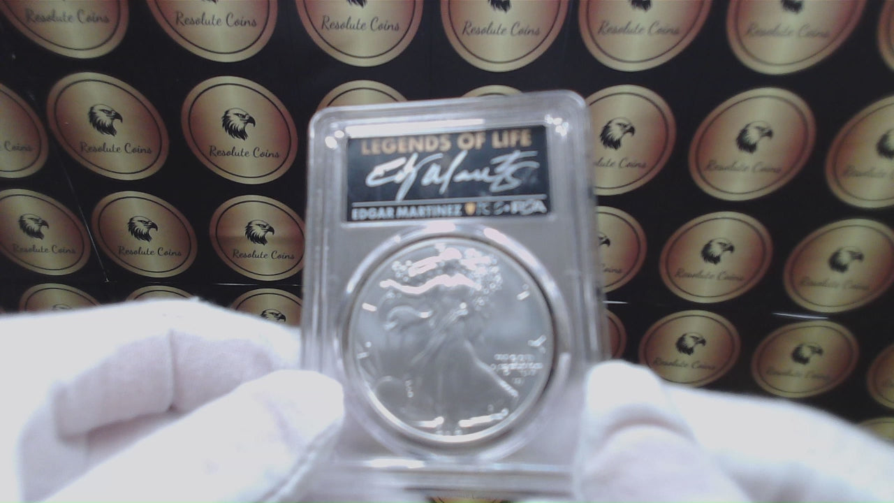 2021 $1 American Silver Eagle PCGS MS70 First Production T-2 Legends of Life MLB Hall of Fame Edgar Martinez Signed Label (1 of 207)