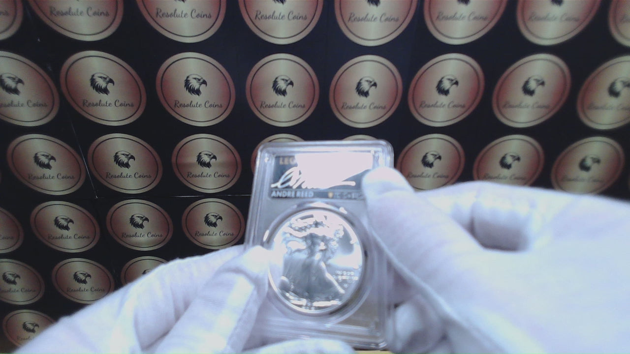 2021 T-2 $1 (W) American Silver Eagle PCGS MS70 NFL Hall of Fame Andre Reed Signed 1 of 100