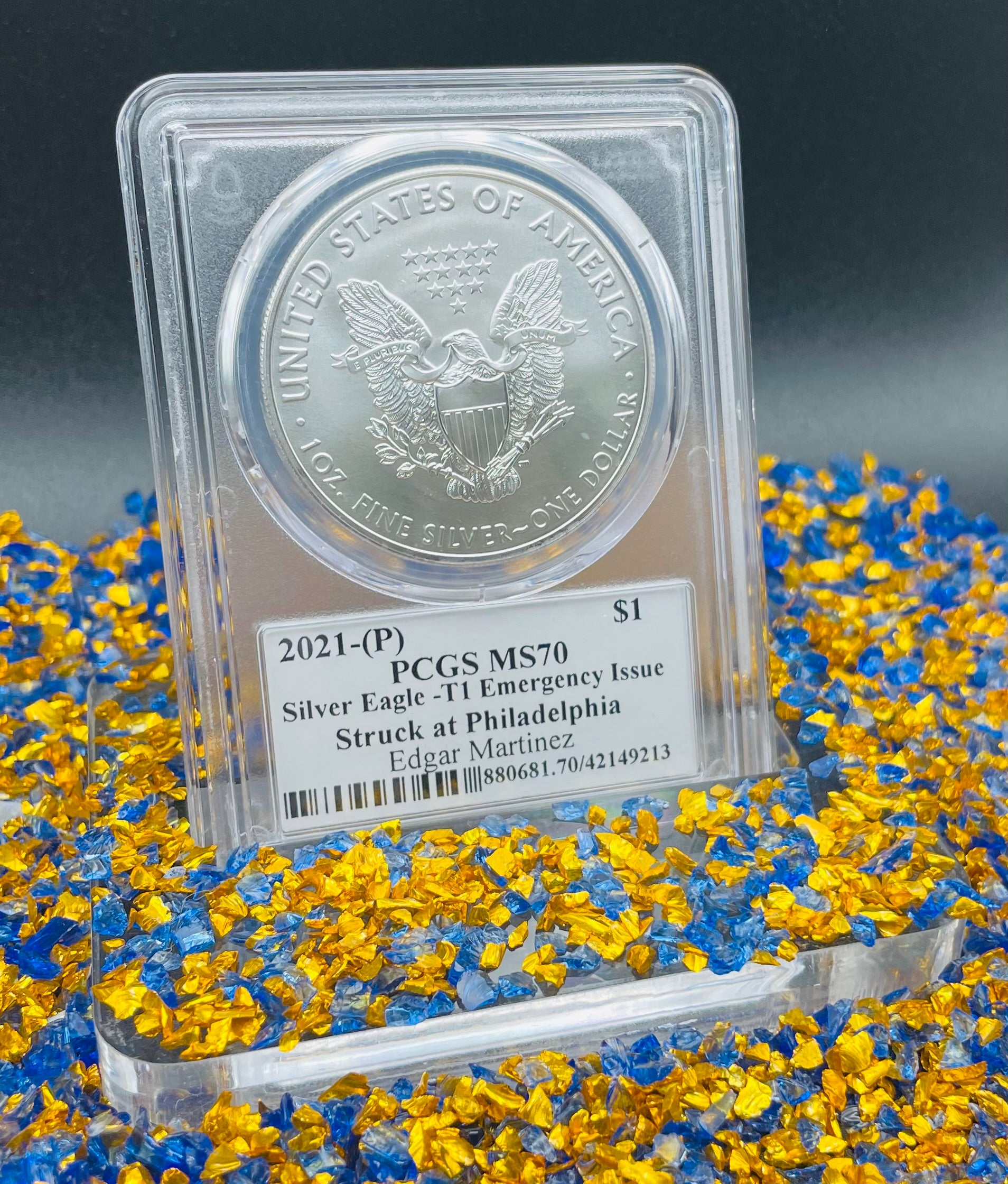 2021 $1 American Silver Eagle PCGS MS70 T-1 Emergency Issue Legends of Life MLB Hall of Fame Edgar Martinez Signed Label (Rare 1 of 150)