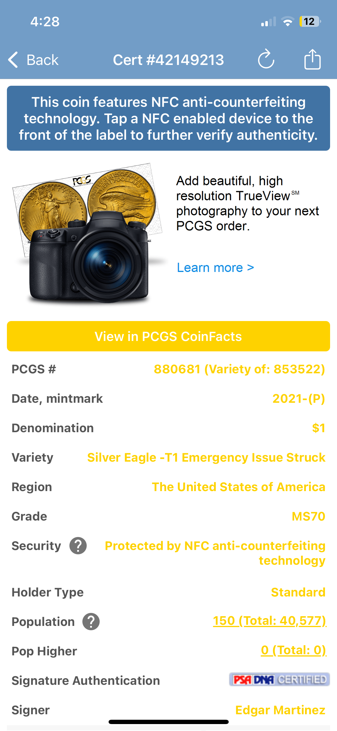 The holder has been micro chipped by PCGS for authentication validation purposes. We tapped the holder against the phone using the PCGS app revealing a green validation notification as displayed in the listing photos.