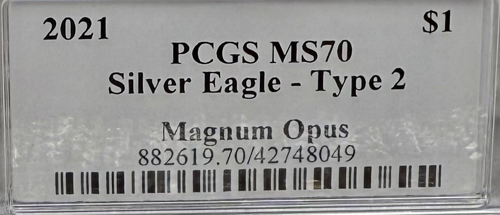 2021 $1 American Silver Eagle PCGS MS70 Type 2 Business Strike Magnum Opus Legacy Collection Mint!