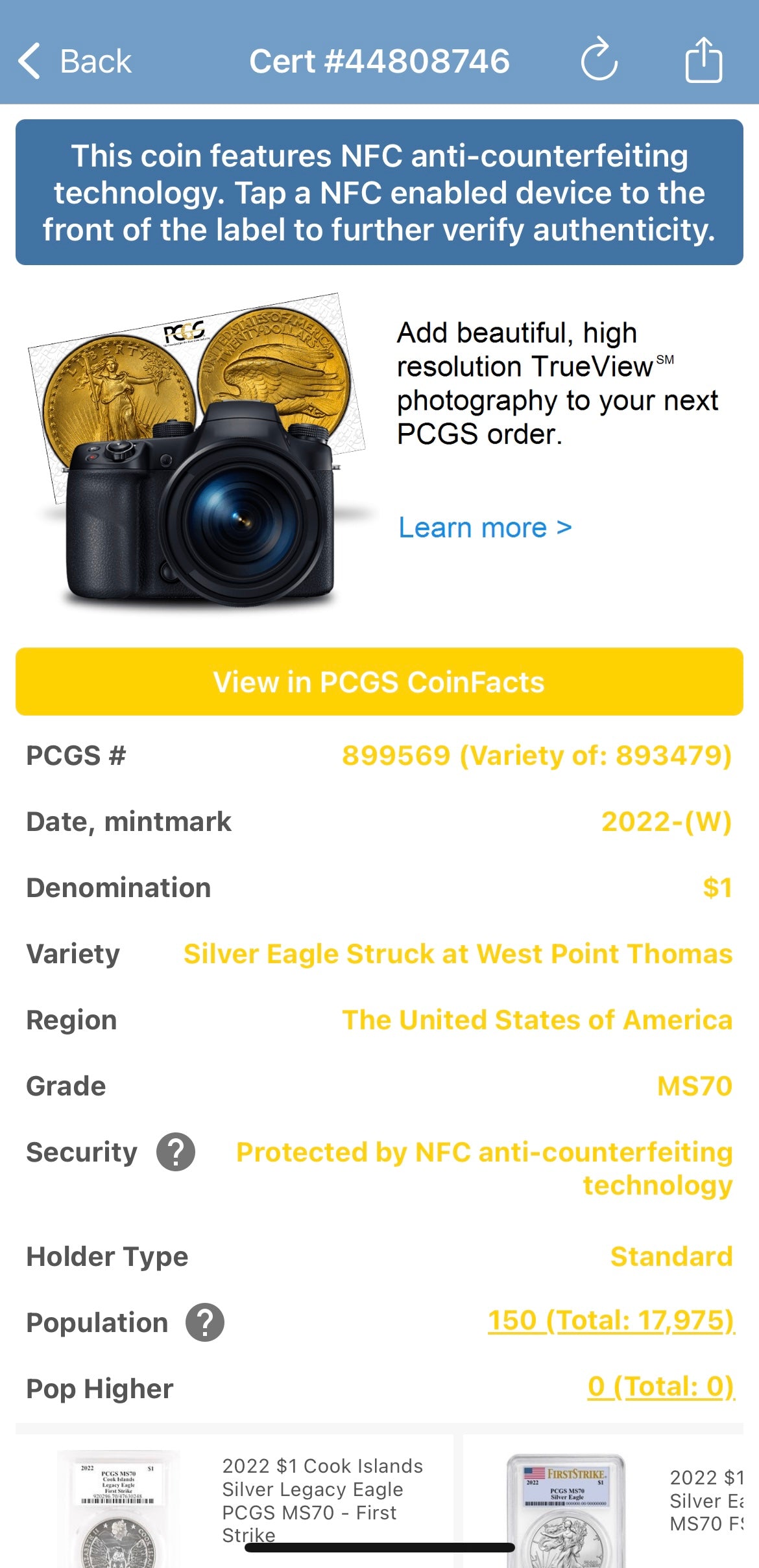 The holder has been micro chipped by PCGS for authentication validation purposes. We tapped the holder against the phone using the PCGS app revealing a green validation notification as displayed in the listing photos.