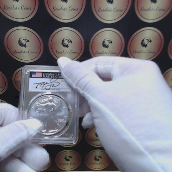 2022 (W) $1 American Silver Eagle PCGS MS70 Master Designer Thomas Cleveland Signed American Flag Black Label Mint Condition (1 of 150)