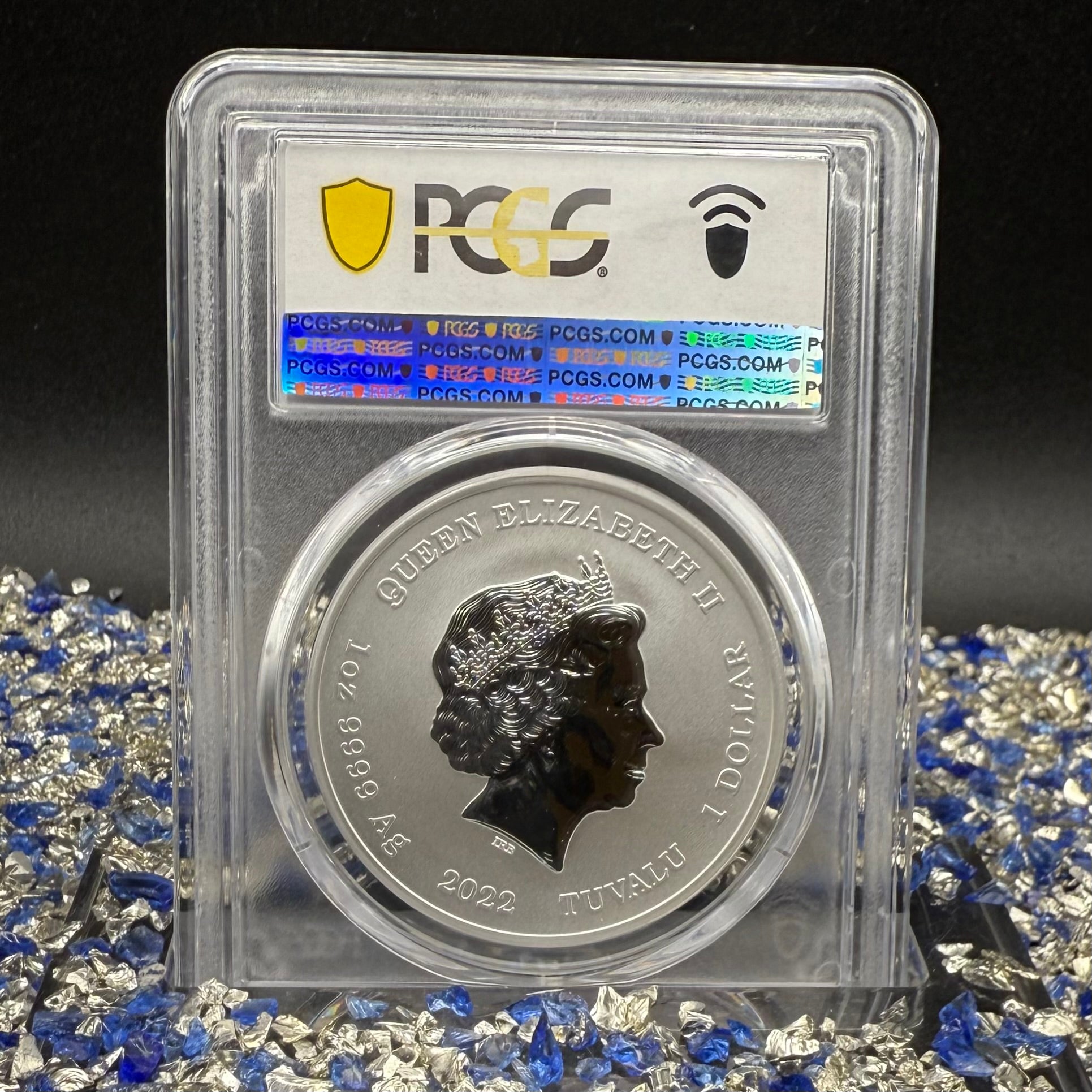 This rare (1 of 33) 2022-P $1 uncirculated Tuvaluan silver dollar is in mint condition with razor sharp details that are as fresh and crisp as the day it left the Perth mint. This exceptional silver dollar was struck perfectly and is flawless as demonstrated by its perfect MS-70 rating issued by the PCGS. This coin has no spots and no toning. The holder is in excellent condition with no marks and no scratches. Refer to photos and video for best description. Price is a function of condition, label, mint count, and availability. We authenticated this coin against the PCGS database. This coin is bagged in an ultra-clear polypropylene package (Acid Free / No PVC) protection it from dust, dirt, and scratches. This piece comes shipped in a gift-wrapped box for maximum protection. Be sure to check out our other high-quality listings.