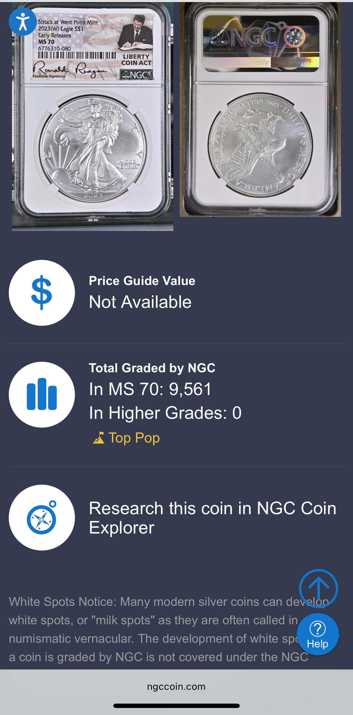 This exceptional certified 2023 MS70 American Silver Eagle coin Early Releases was struck perfectly and received a stunning highest grade by the NGC. This simple yet elegant piece is in mint condition signed by Ronald Reagan making this an excellent addition to any collection.