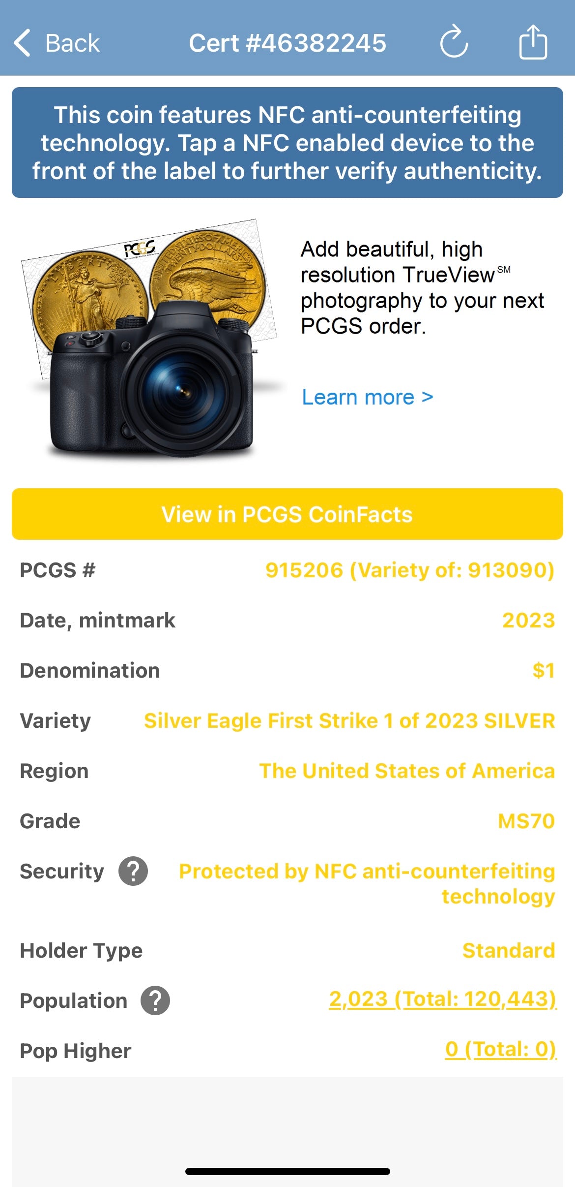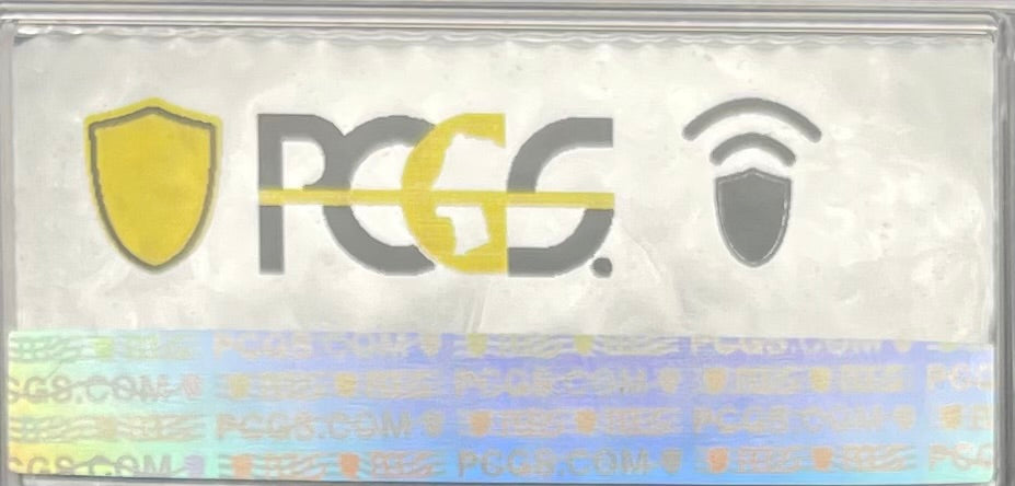 The holder has been micro chipped by PCGS for authentication validation purposes. We tapped the holder against the phone using the PCGS app revealing a green validation notification as displayed in the listing photos.