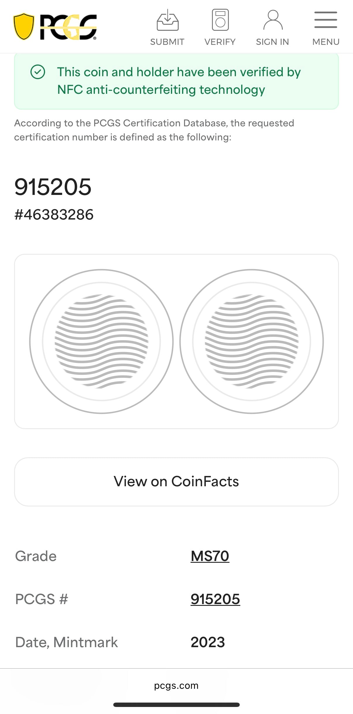 The holder has been micro chipped by PCGS for authentication validation purposes. We tapped the holder against the phone using the PCGS app revealing a green validation notification as displayed in the listing photos.