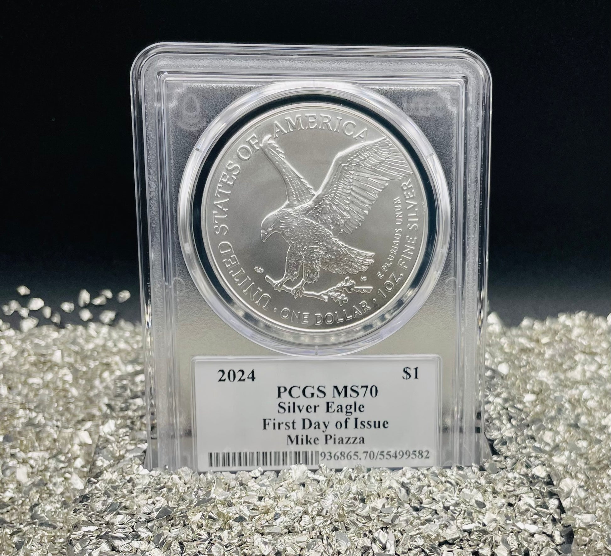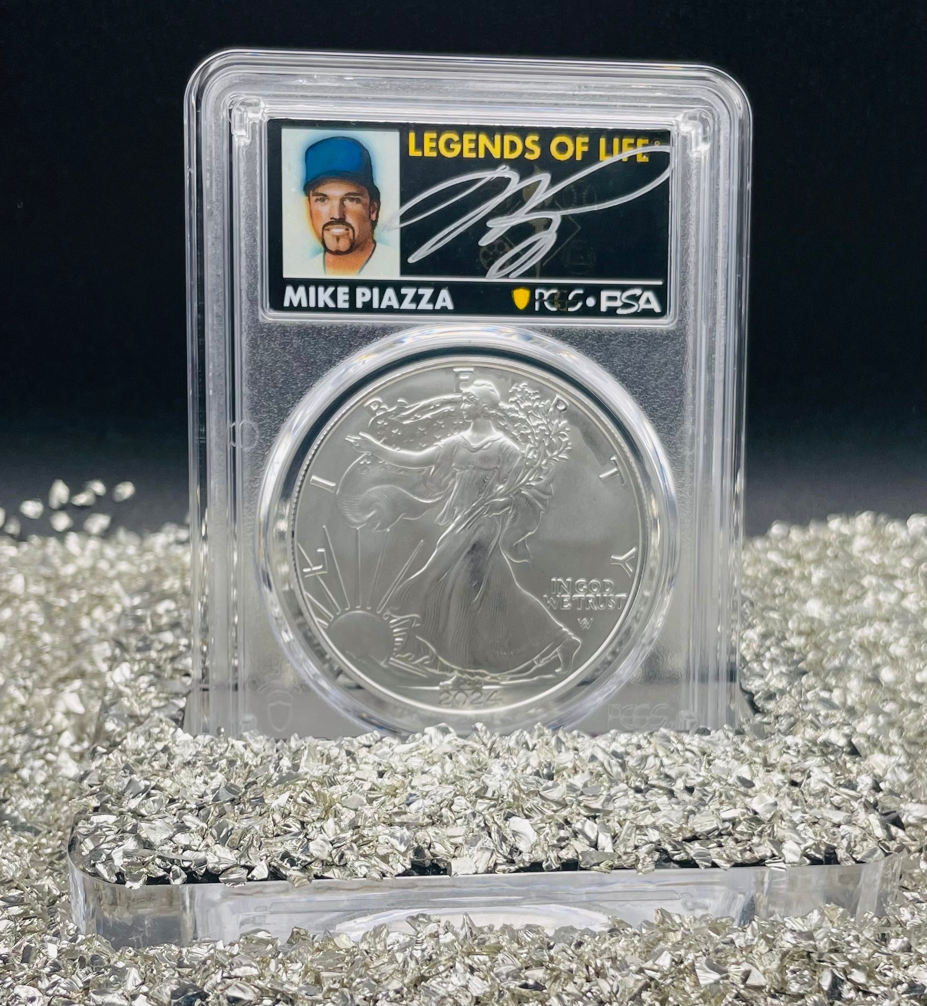 2024 $1 American Silver Eagle PCGS MS70 FDOI Legends of Life MLB Hall of Fame Mike Piazza Signed Label Mint Condition (Rare 1 of 15)