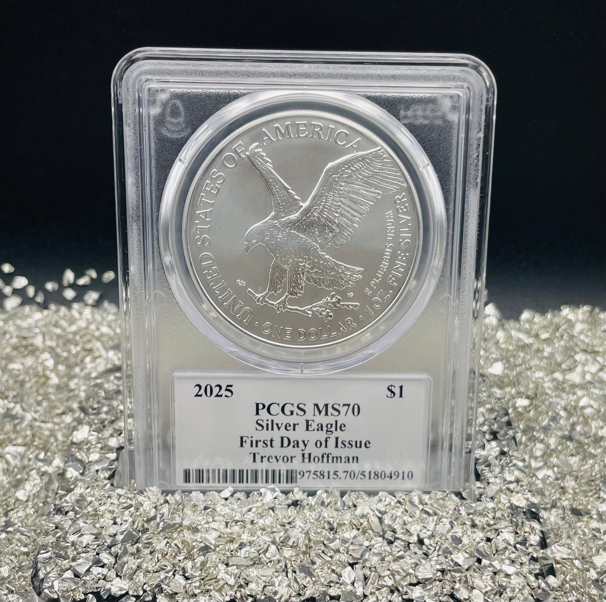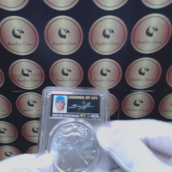 2025 $1 American Silver Eagle PCGS MS70 FDOI Legends of Life MLB Hall of Fame Trevor Hoffman Signed Label (Rare 1 of 15)