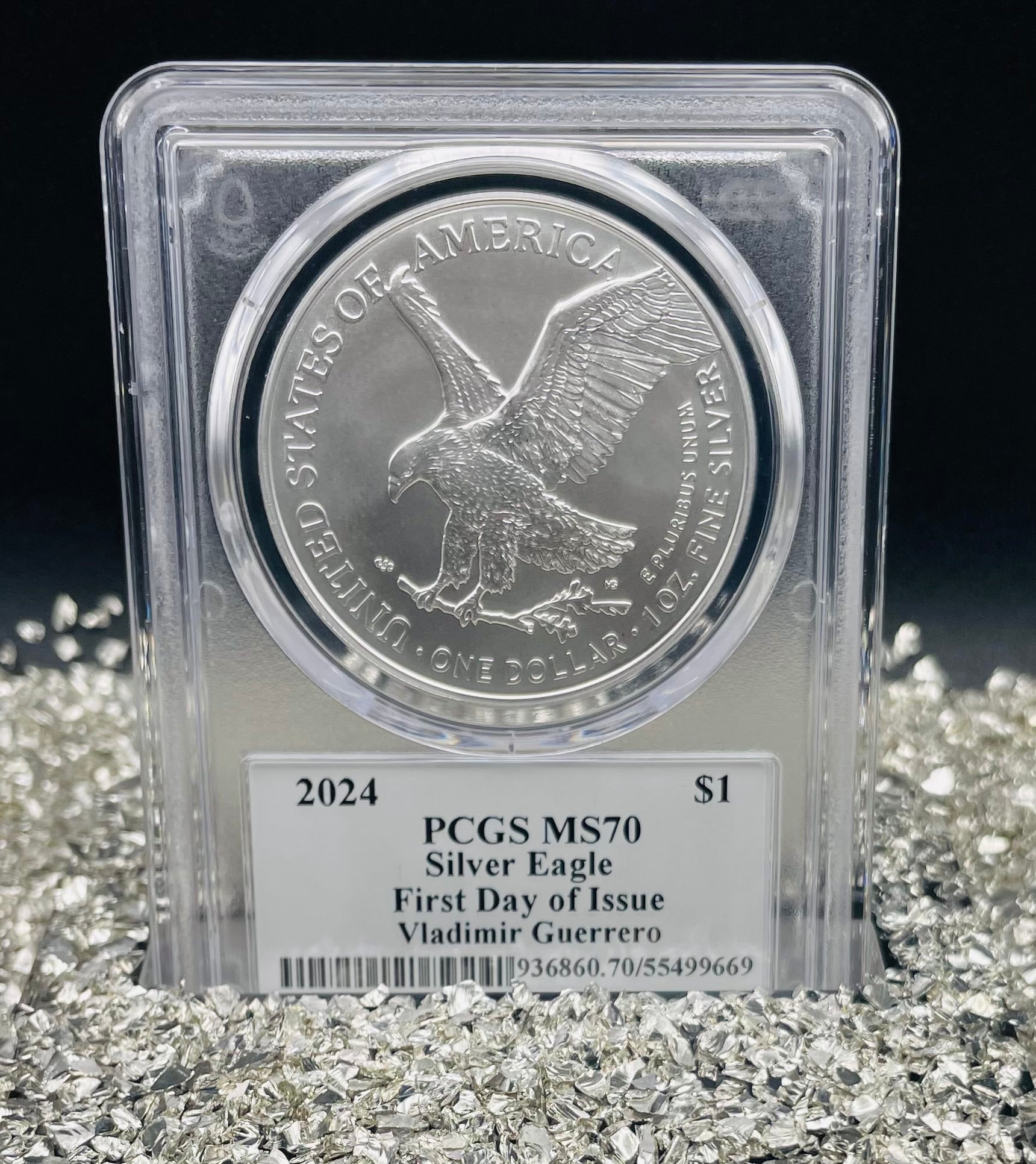 2024 $1 American Silver Eagle PCGS MS70 FDOI Legends of Life MLB Hall of Fame Vladimir Guerrero Signed Label Mint Condition (Rare 1 of 15)