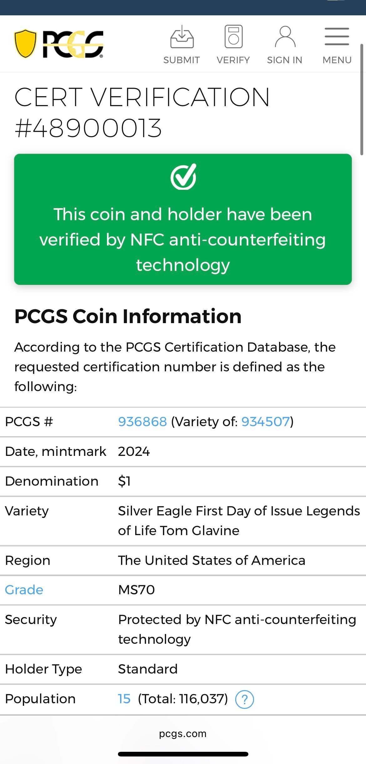 The holder has been micro chipped by PCGS for authentication validation purposes. We tapped the holder against the phone using the PCGS app revealing a green validation notification as displayed in the listing photos.