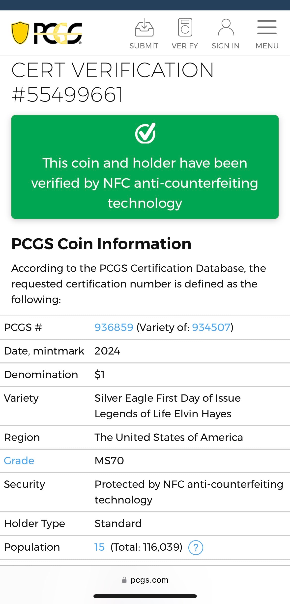 The holder has been micro chipped by PCGS for authentication validation purposes. We tapped the holder against the phone using the PCGS app revealing a green validation notification as displayed in the listing photos.