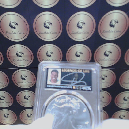 2024 $1 American Silver Eagle PCGS MS70 FDOI Legends of Life NBA Hall of Fame Giannis Antetokounmpo Signed Label (Rare 1 of 20)