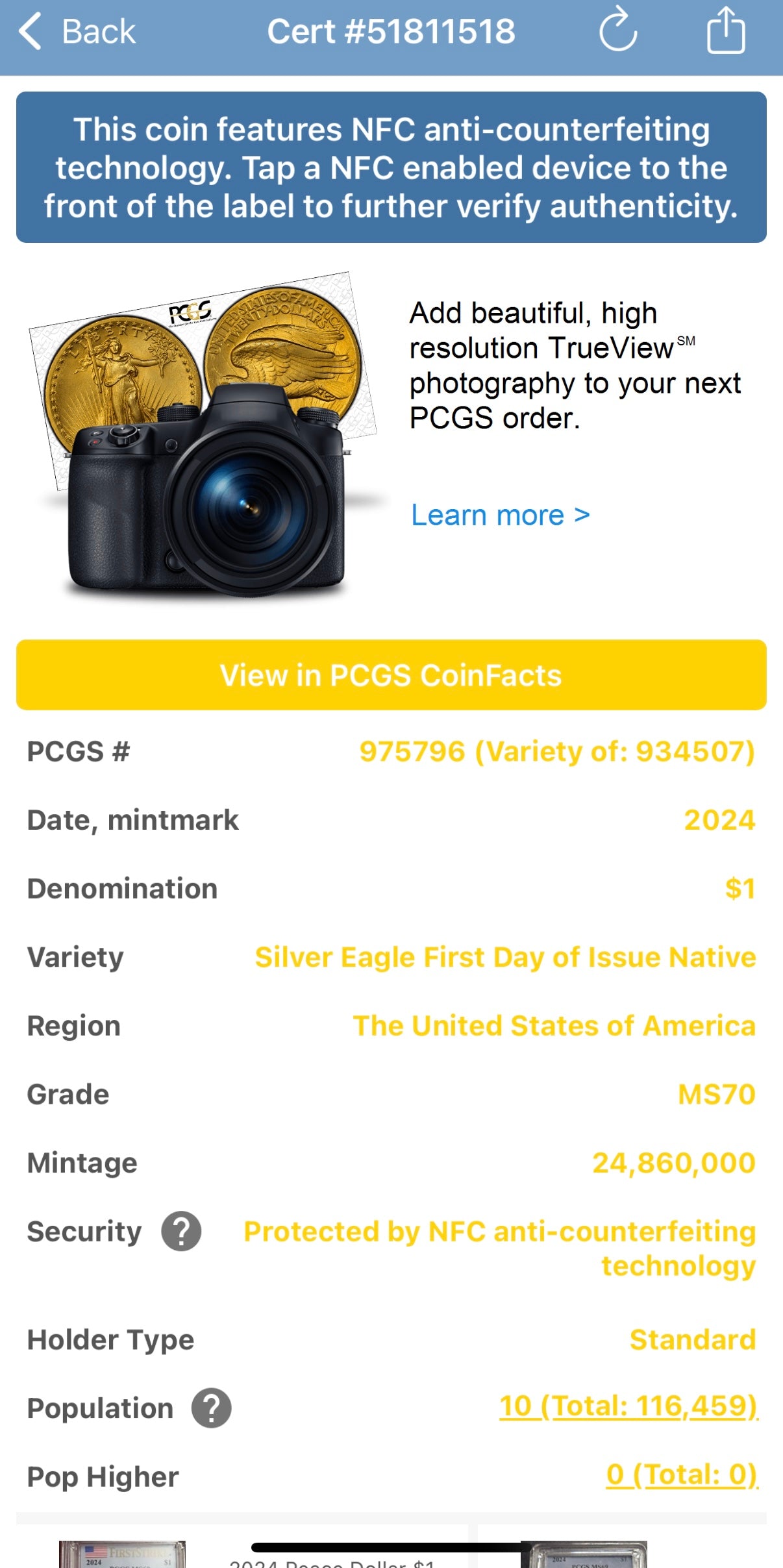 Characteristic: Certified Coin