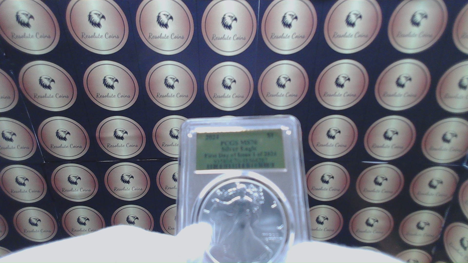 2024 $1 (W) American Silver Eagle PCGS MS70 First Day of Issue Gold Foil Label Mint Condition (Rare 1 of 2,024)