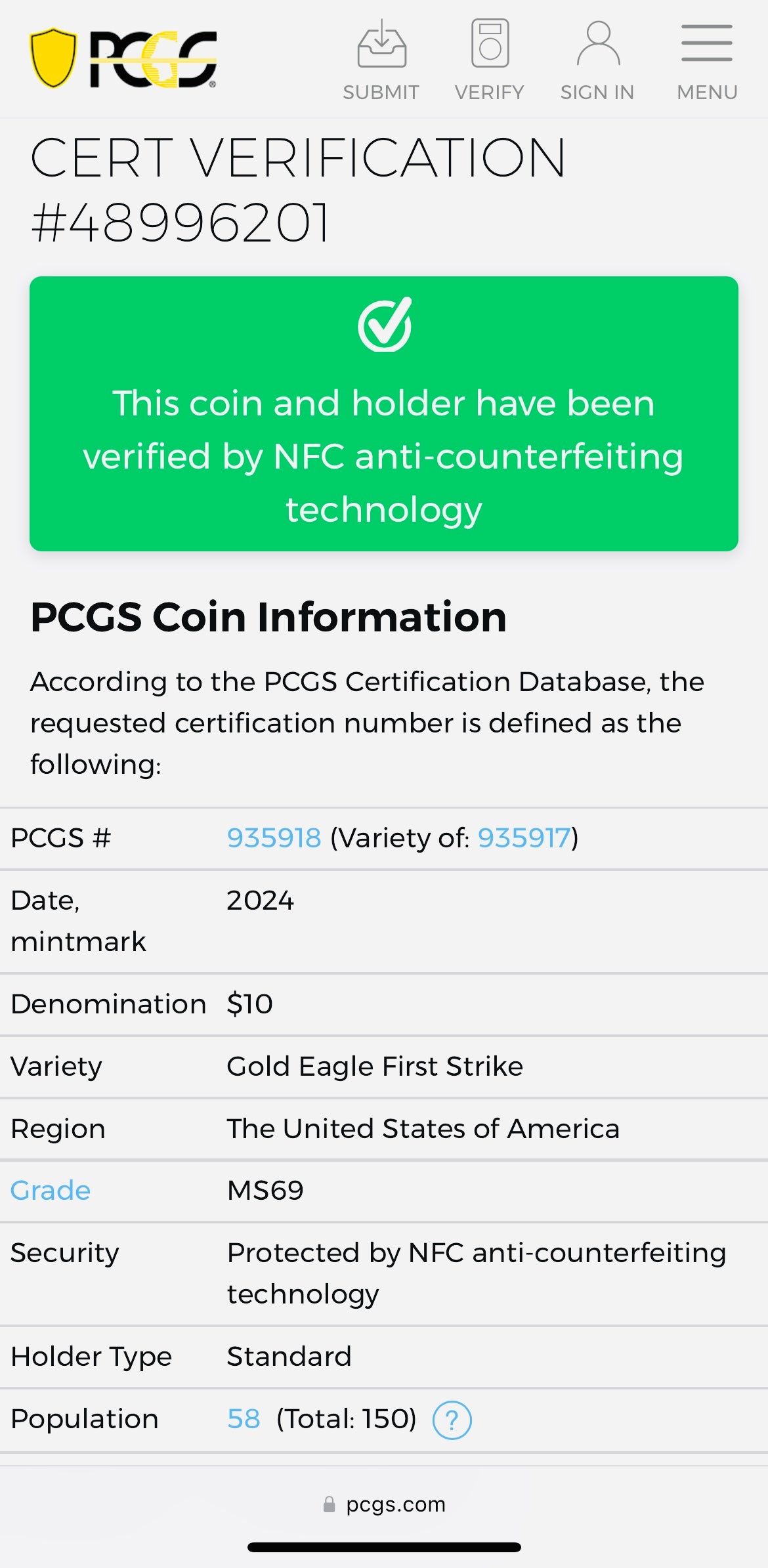This holder has been micro chipped by PCGS for authentication validation purposes. We tapped the holder against the phone using the PCGS app revealing a green validation notification as displayed in the listing photos.