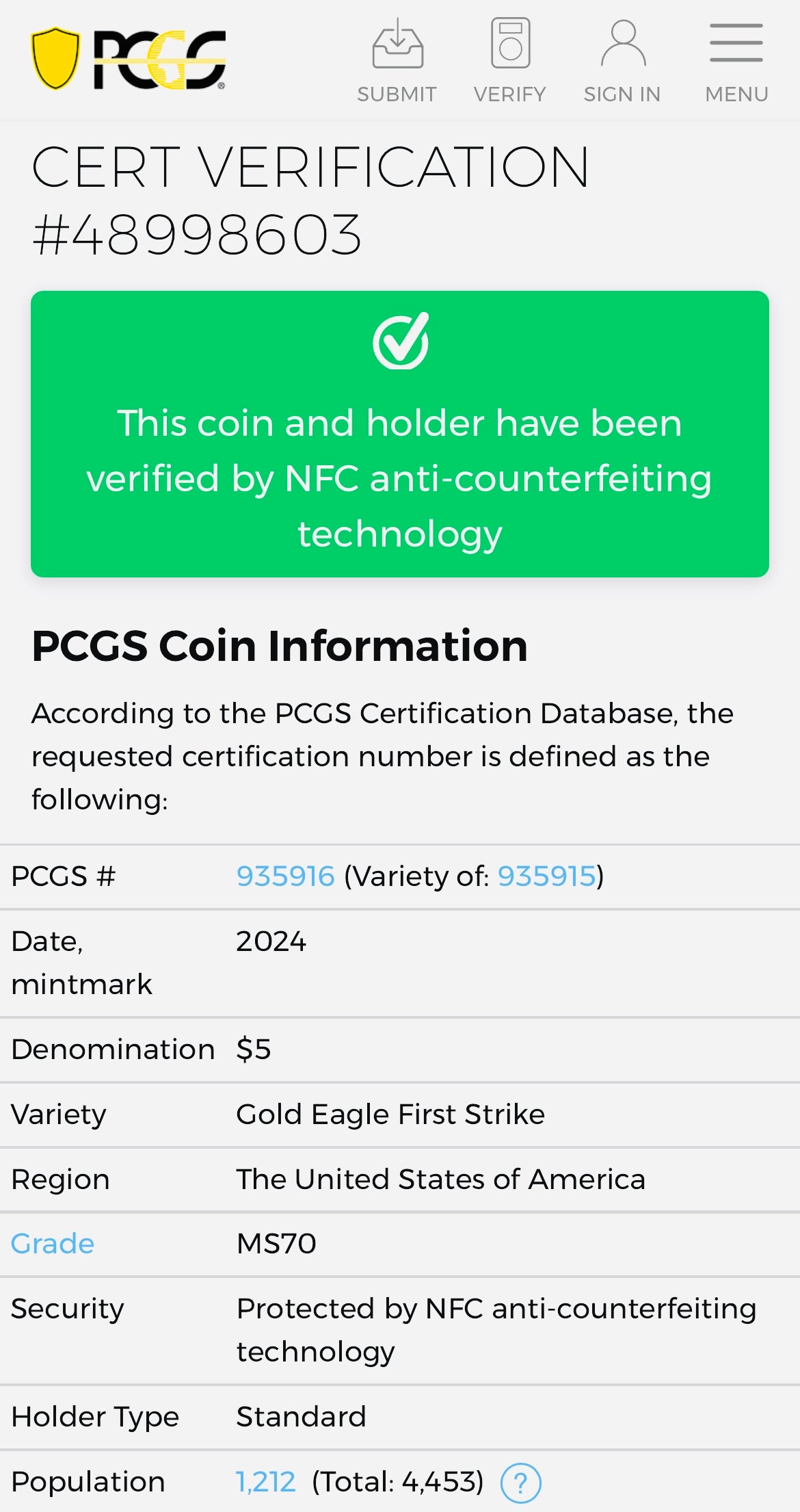The holder has been micro chipped by PCGS for authentication validation purposes. We tapped the holder against the phone using the PCGS app revealing a green validation notification as displayed in the listing photos.
