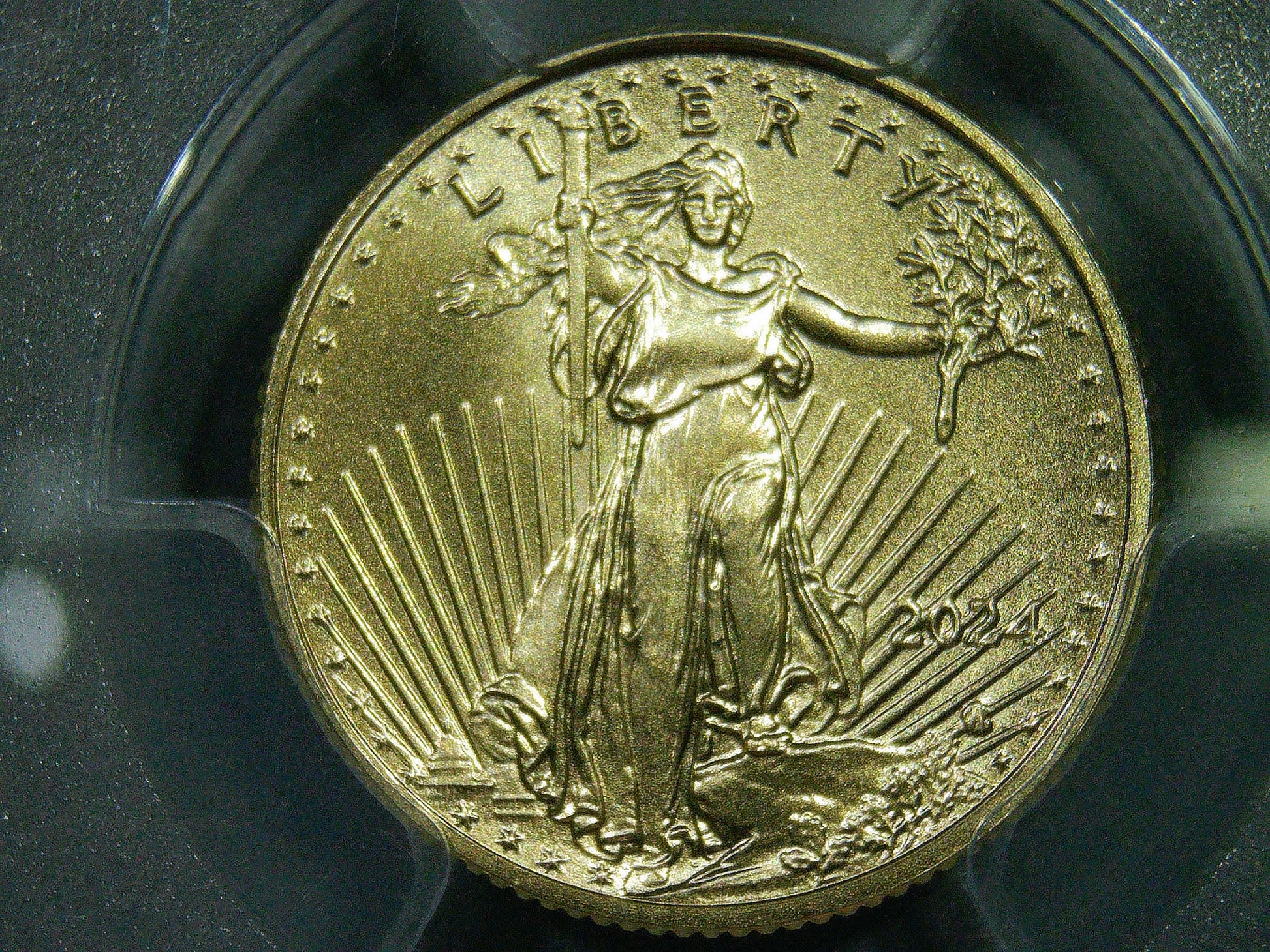 This exceptional certified 2024 MS70 American Gold Eagle coin was struck flawlessly and received a perfect grade by the PCGS. This simple yet elegant resolute coin is in mint condition. Holder has no marks or scratches. Low mintage makes this resolute coin a beautiful addition to your personal collection.