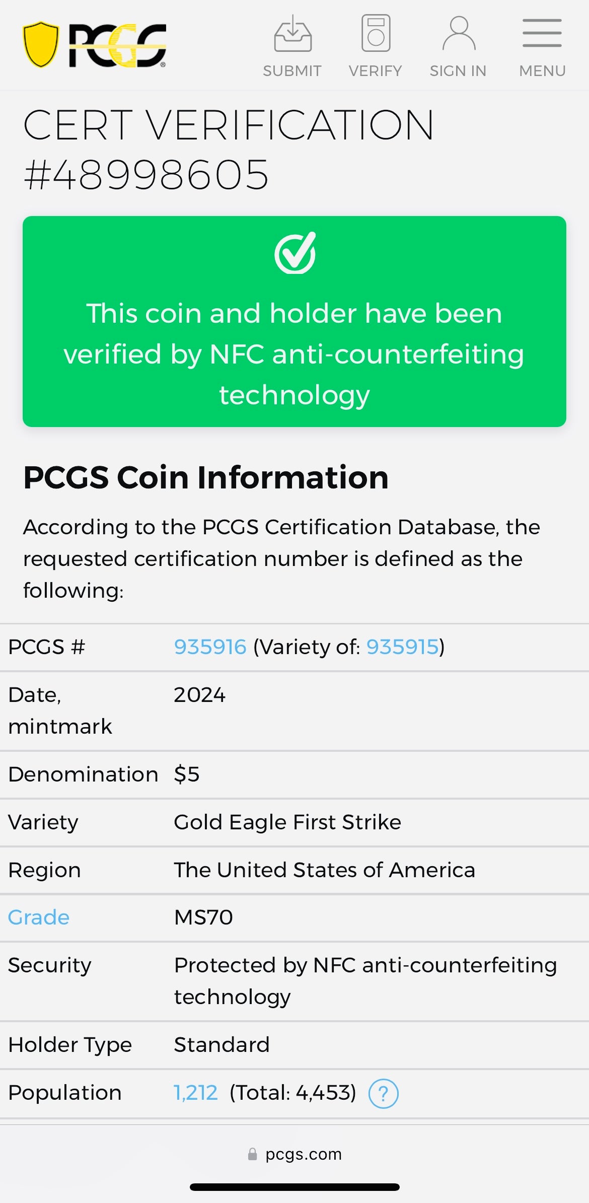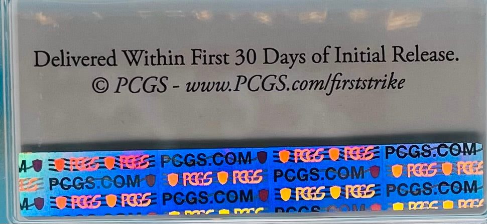 The holder has been micro chipped by PCGS for authentication validation purposes. We tapped the holder against the phone using the PCGS app revealing a green validation notification as displayed in the listing photos.