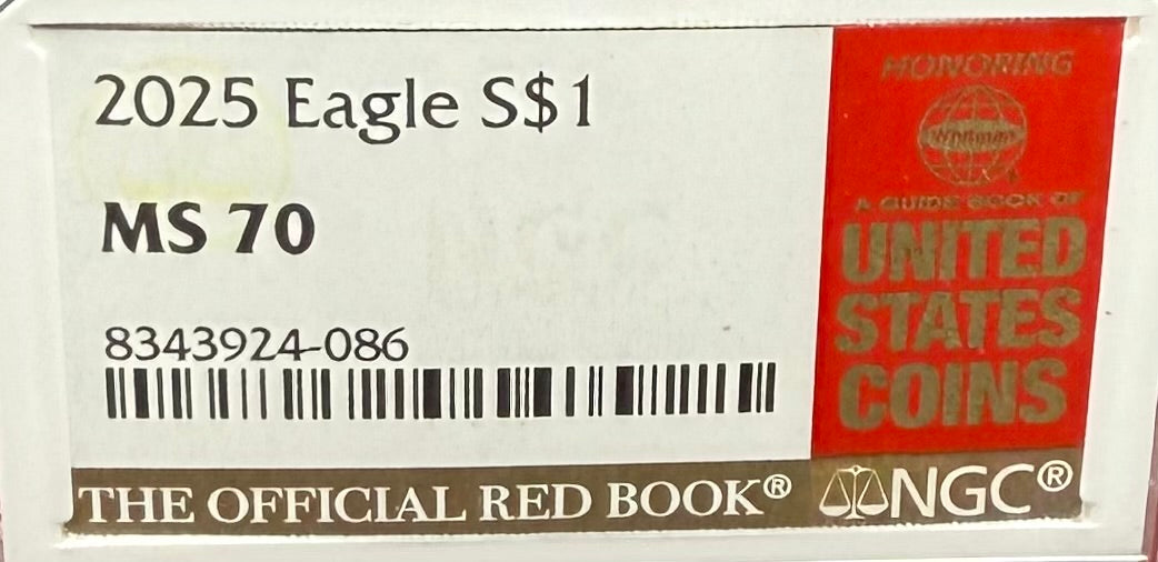 2025 $1 American Silver Eagle NGC MS70 Business Strike The Official Red Book Label