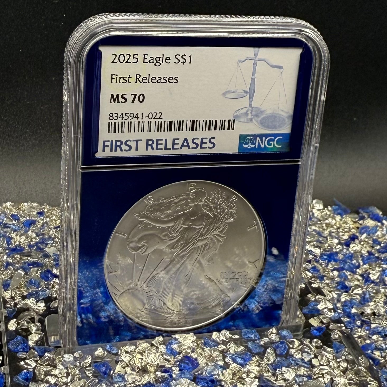 2025 $1 American Silver Eagle NGC MS70 First Releases Classic Blue Label in Blue Foil Holder Rare