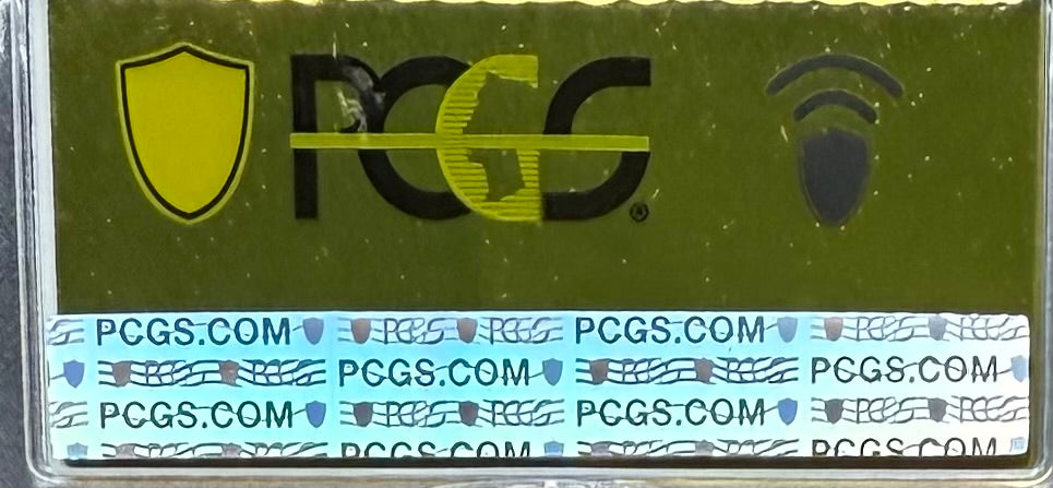 The holder has been micro chipped by PCGS for authentication validation purposes. We tapped the holder against the phone using the PCGS app revealing a green validation notification as displayed in the listing photos.
