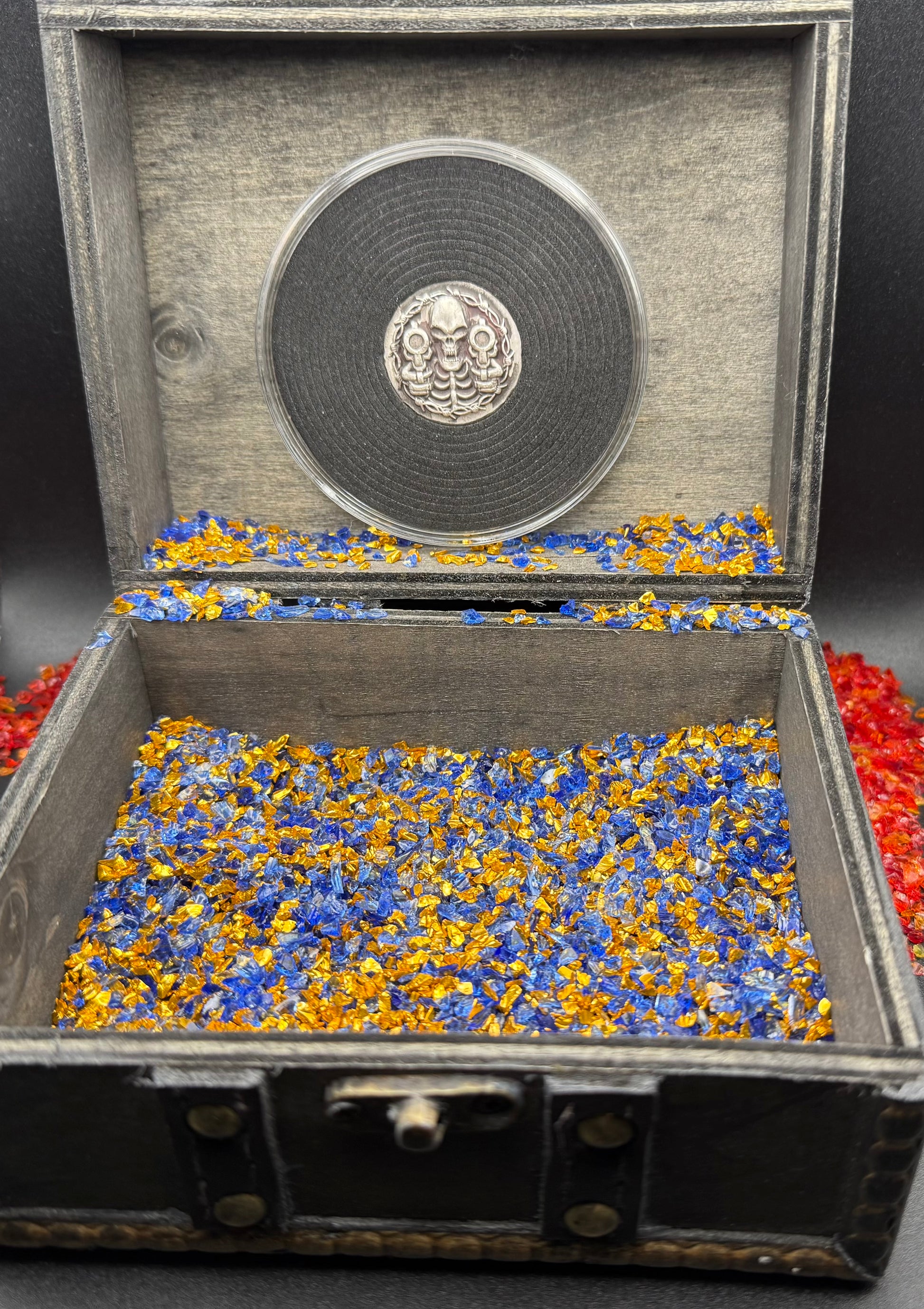 This precious piece comes sealed in a protective capsule (Acid Free / No PVC) protecting it from dust, dirt, and scratches. A custom wooden treasure chest is included to secure your valuable treasure. Signed certificate of authenticity is included.