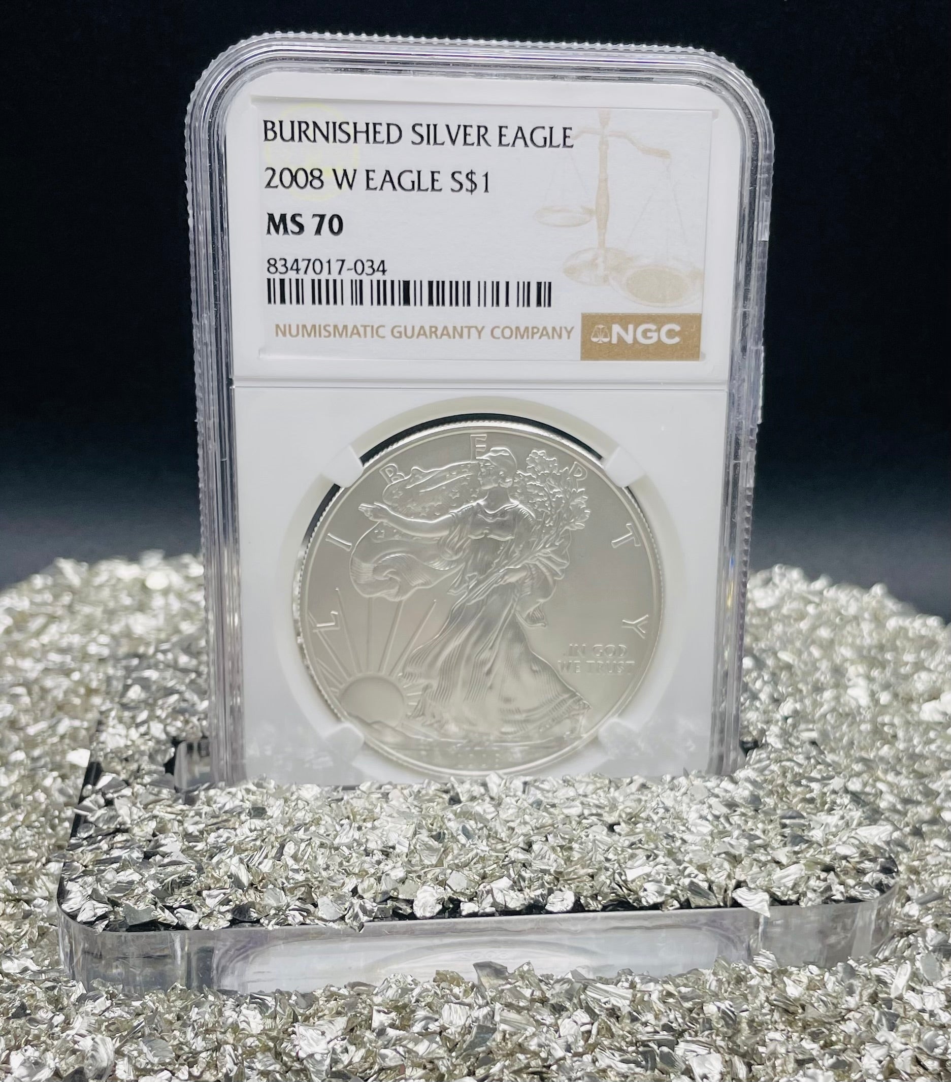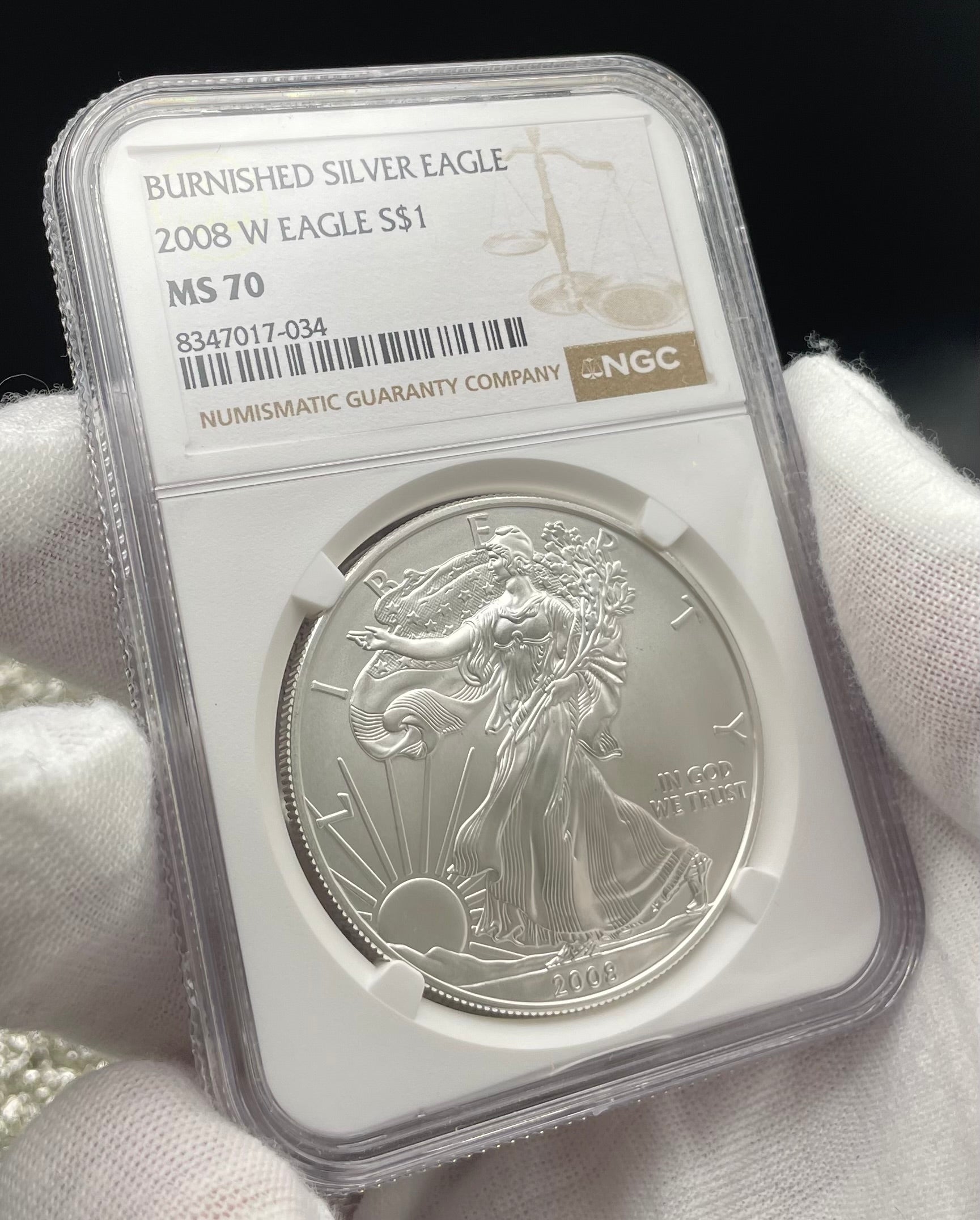 Burnished 2008 $1 (W) American Silver Eagle NGC MS70 Brown Label Mint Condition