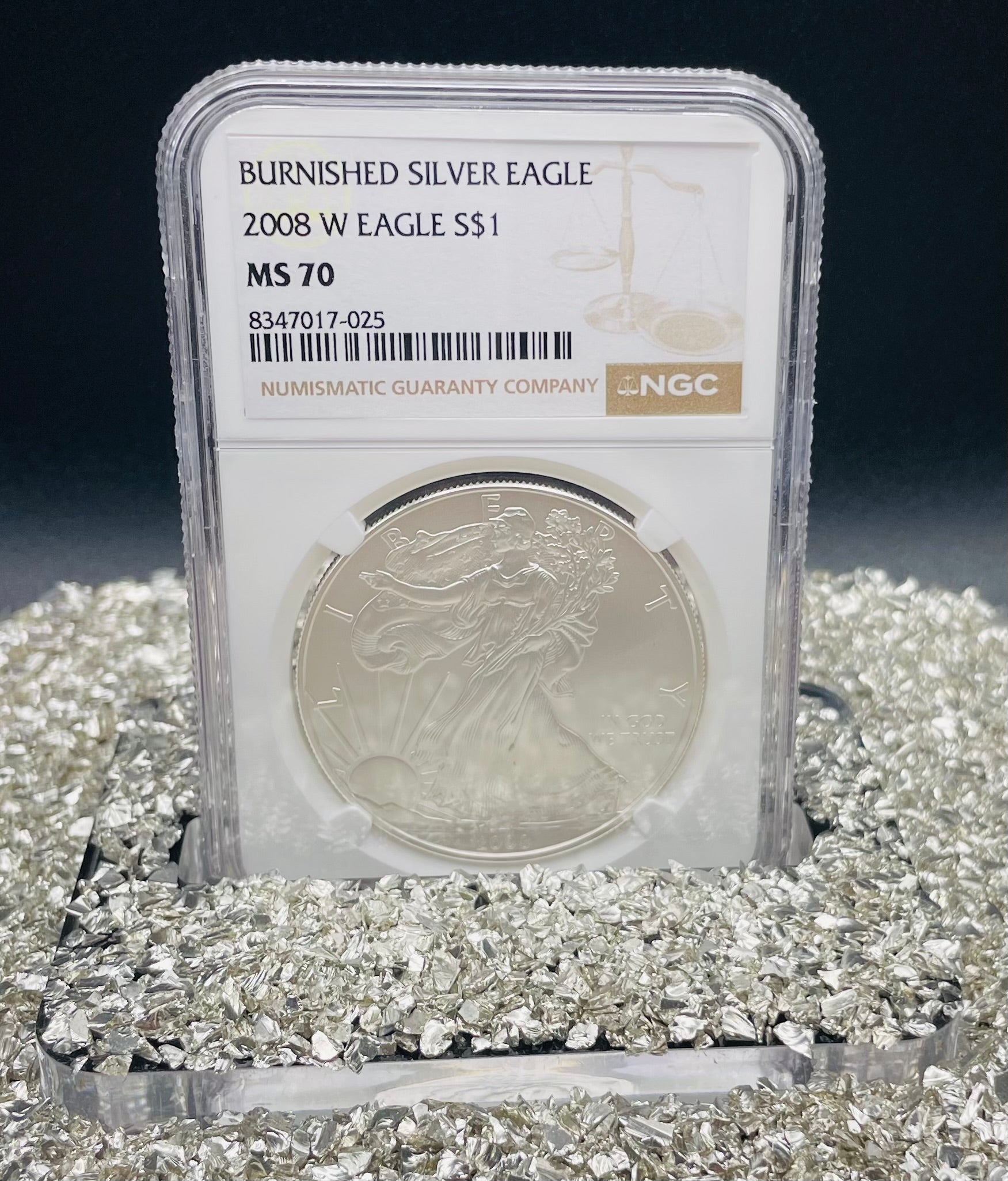 Burnished 2008 $1 (W) American Silver Eagle NGC MS70 Brown Label Mint Condition