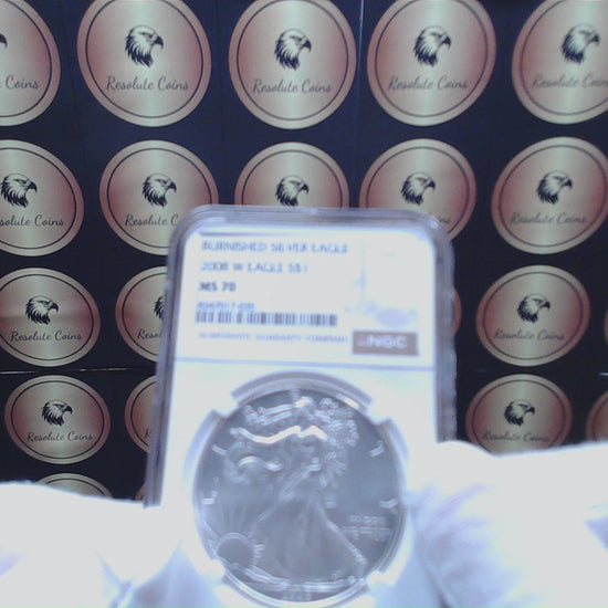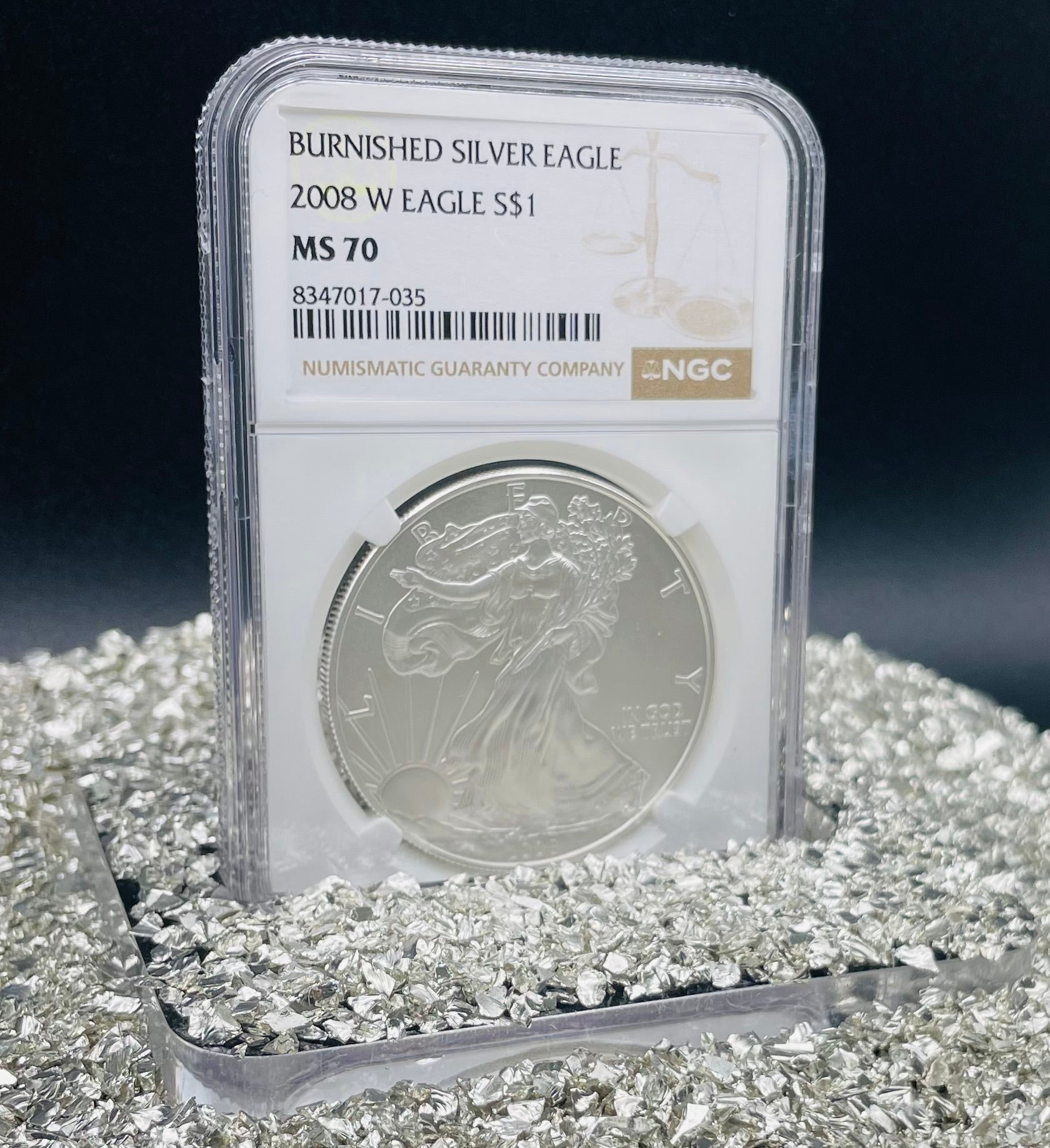 Burnished 2008 $1 (W) American Silver Eagle NGC MS70 Brown Label Mint Condition