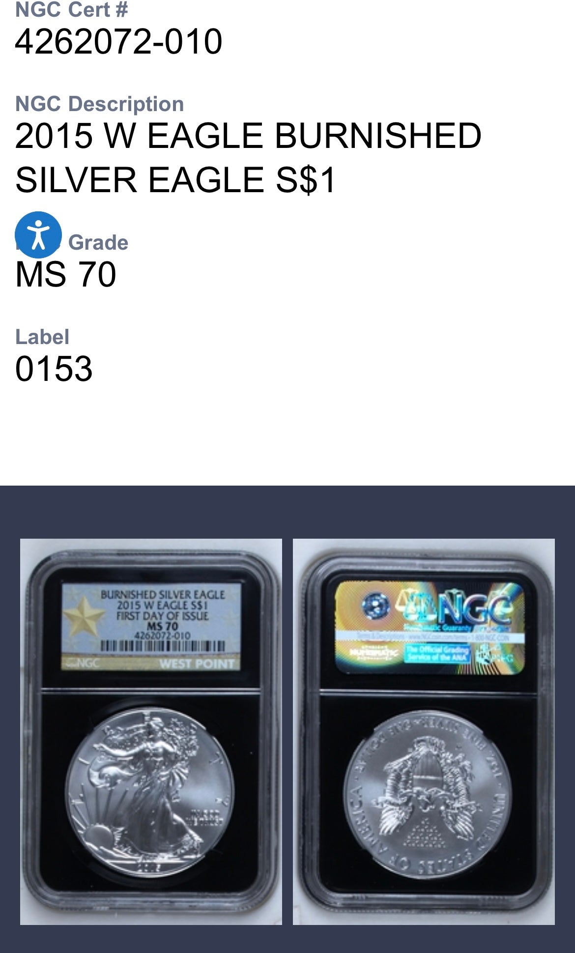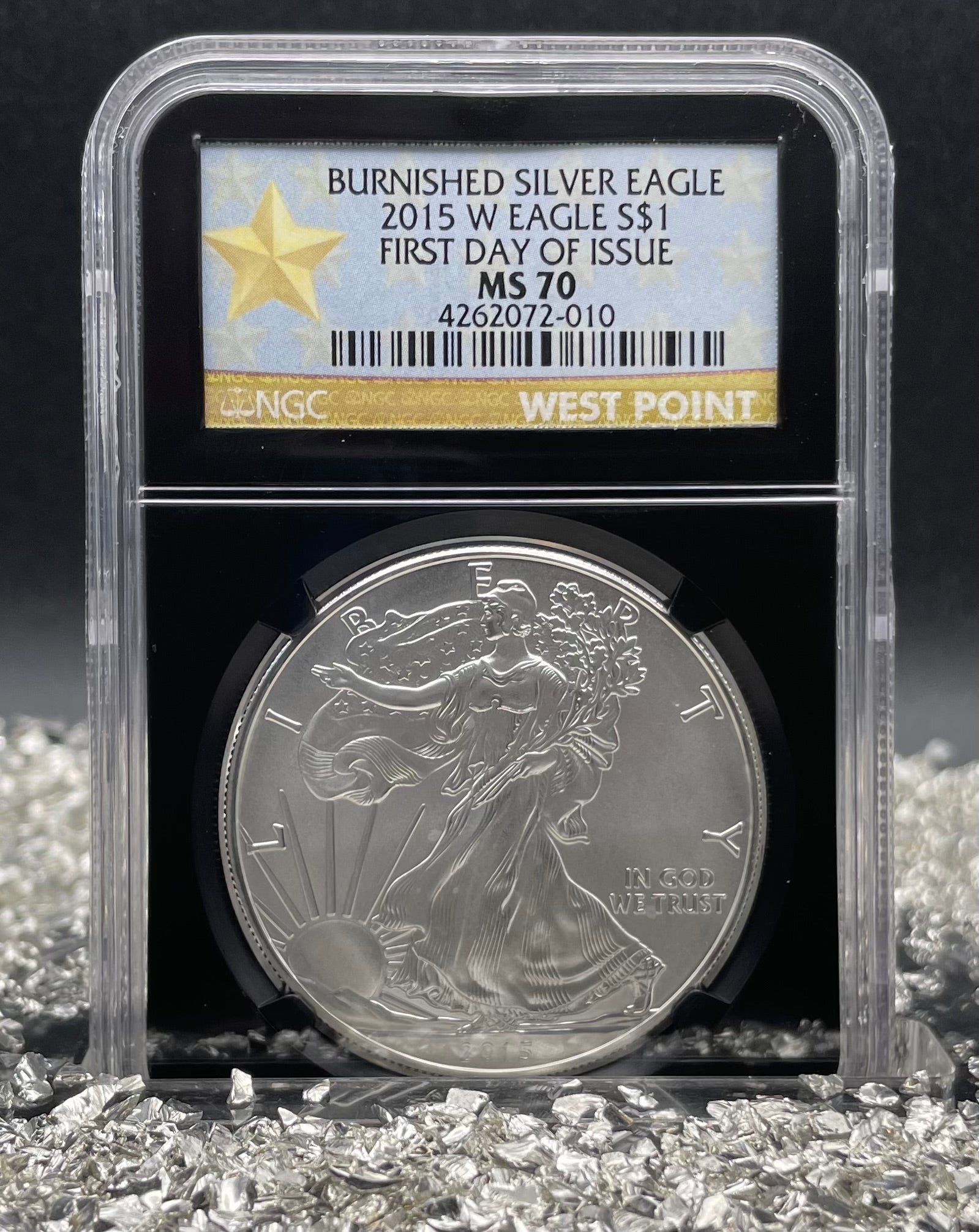 Burnished 2015 (W) $1 American Silver Eagle NGC MS70 First Day of Issue Black Core Gold Star Label Mint Condition (1 of 6,091)