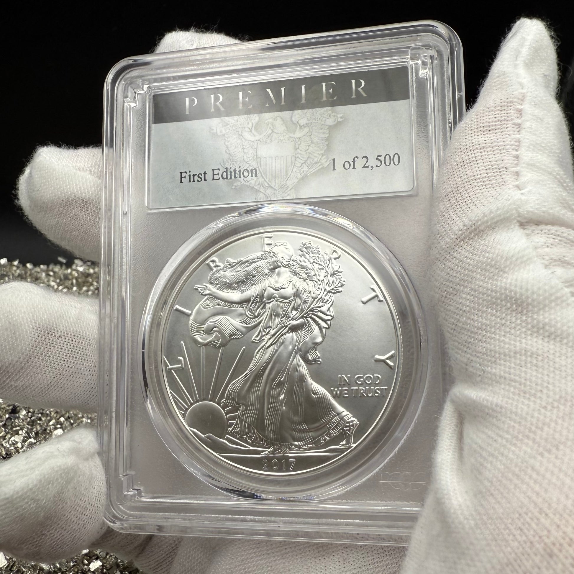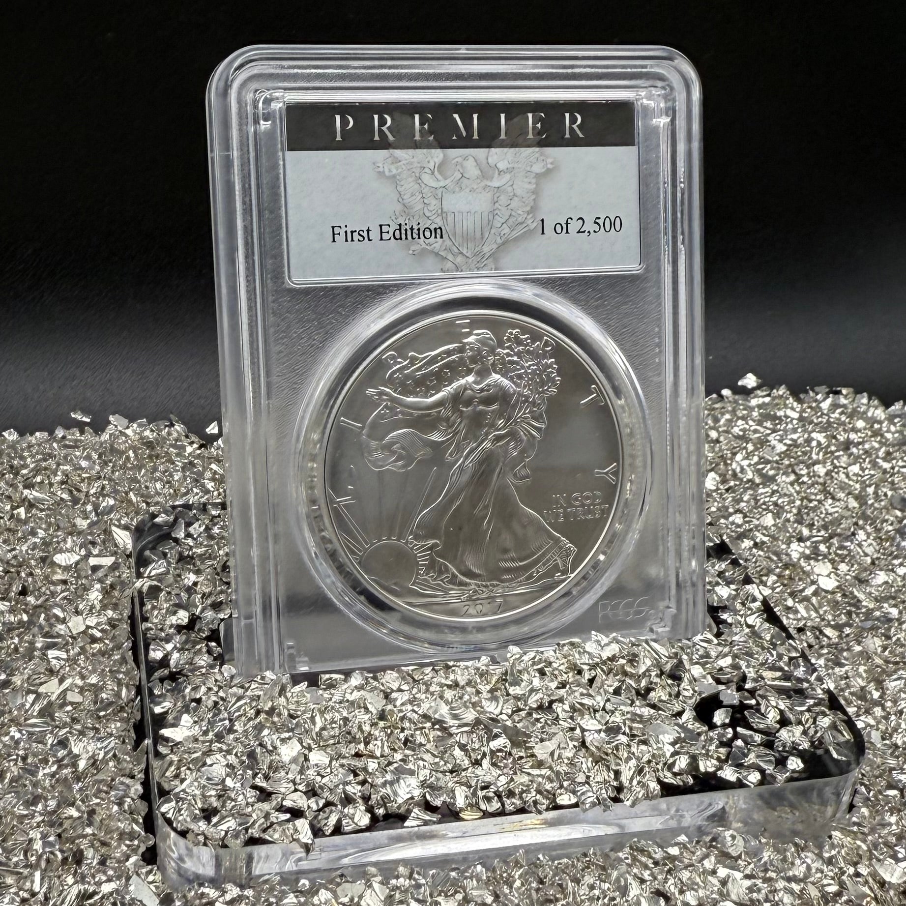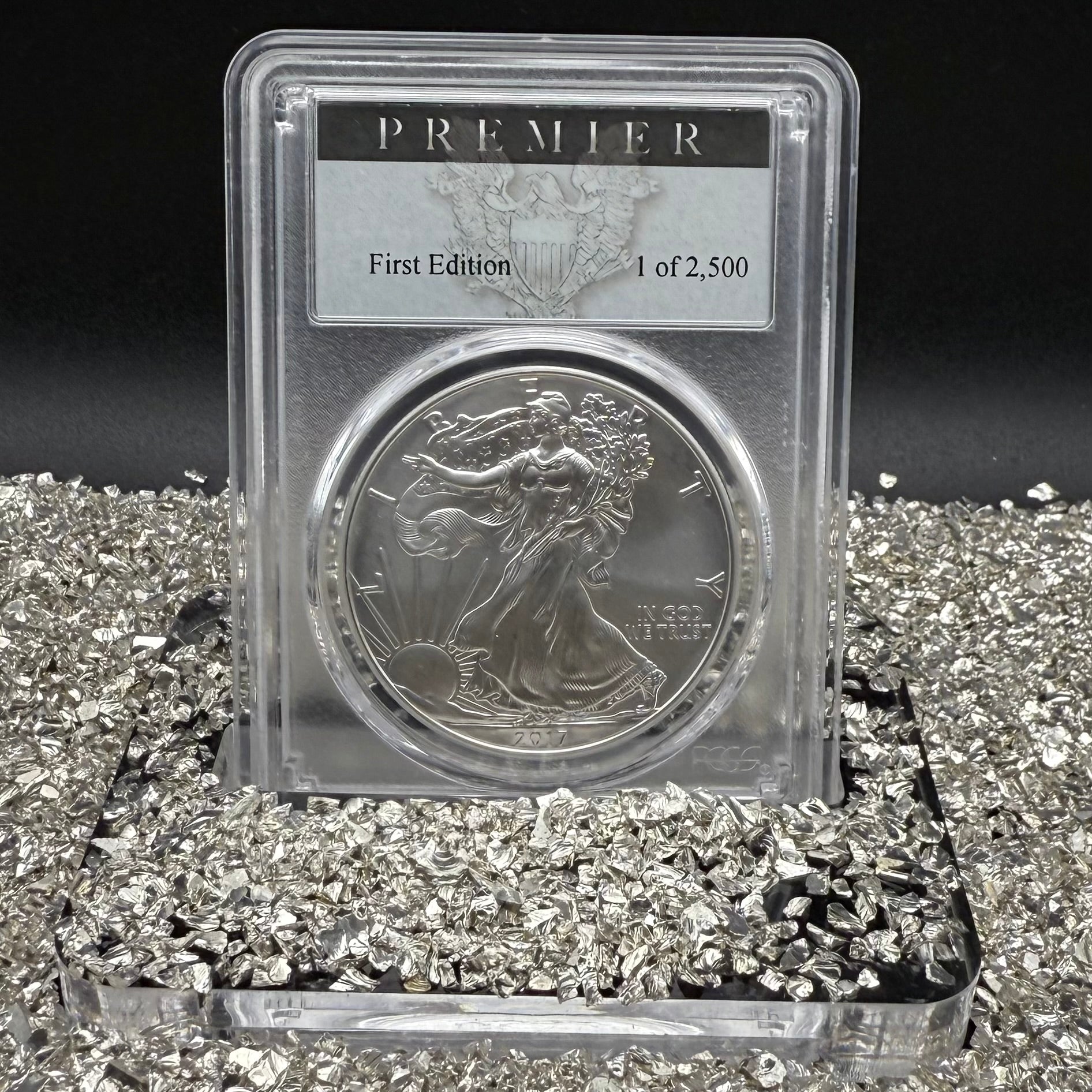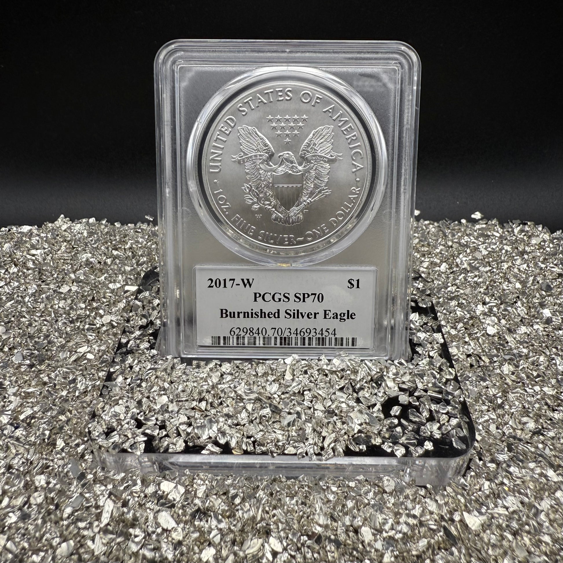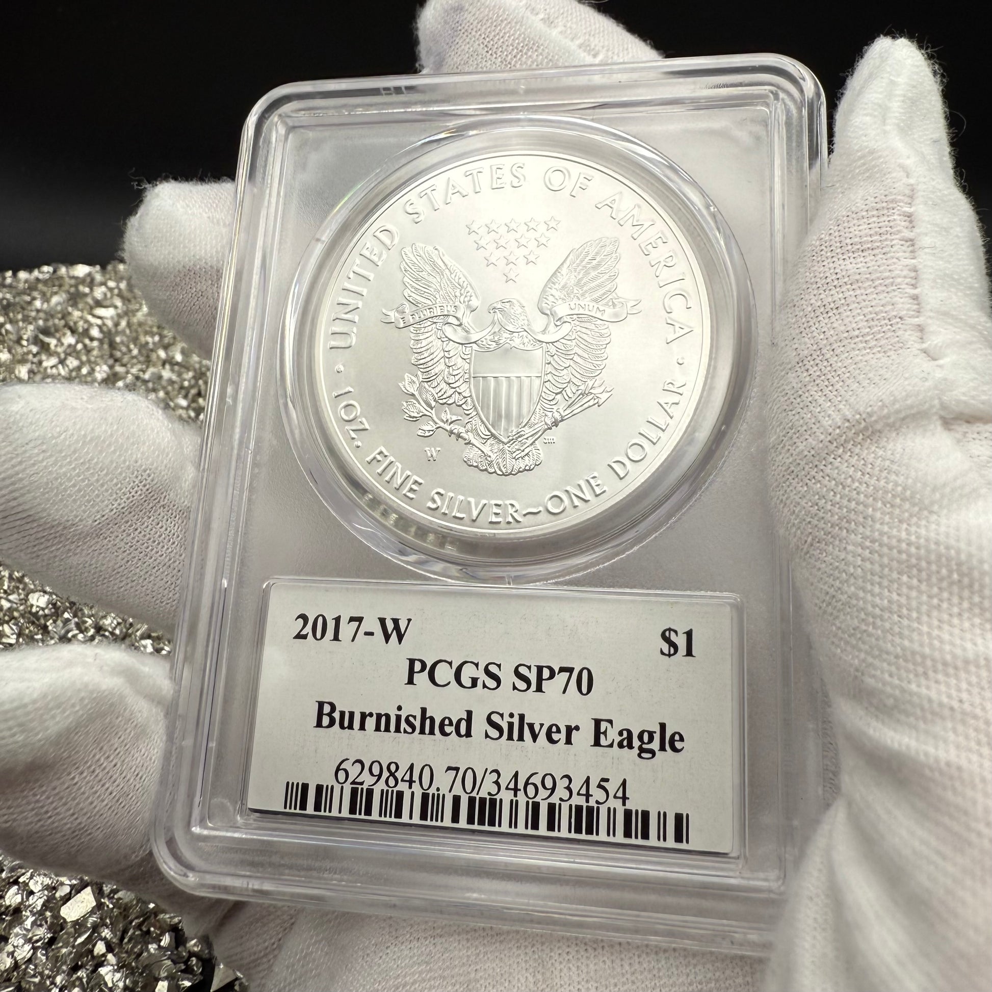 Burnished 2017 (W) $1 American Silver Eagle PCGS SP70 Premier Black Label Mint Condition (1 of 2,500)