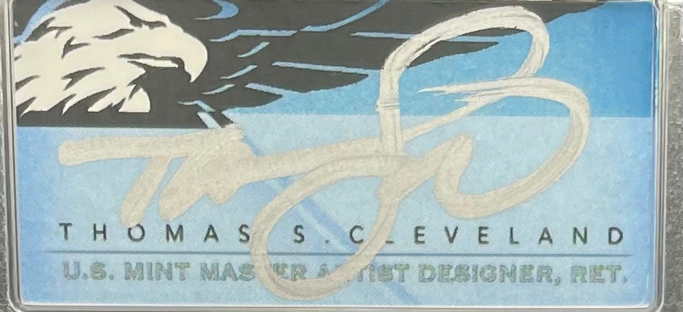 Burnished 2019 (W) $1 American Silver Eagle PCGS SP70 First Strike U.S. Mint AIP Master Designer Blue Label Signed by Thomas S. Cleveland Mint Condition (1 of 150)
