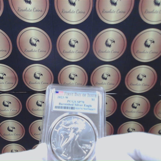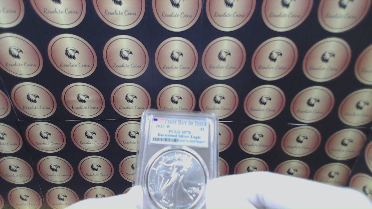 Burnished 2023 (W) $1 American Silver Eagle PCGS SP70 First Day of Issue American Flag Label (1 of 1,869)