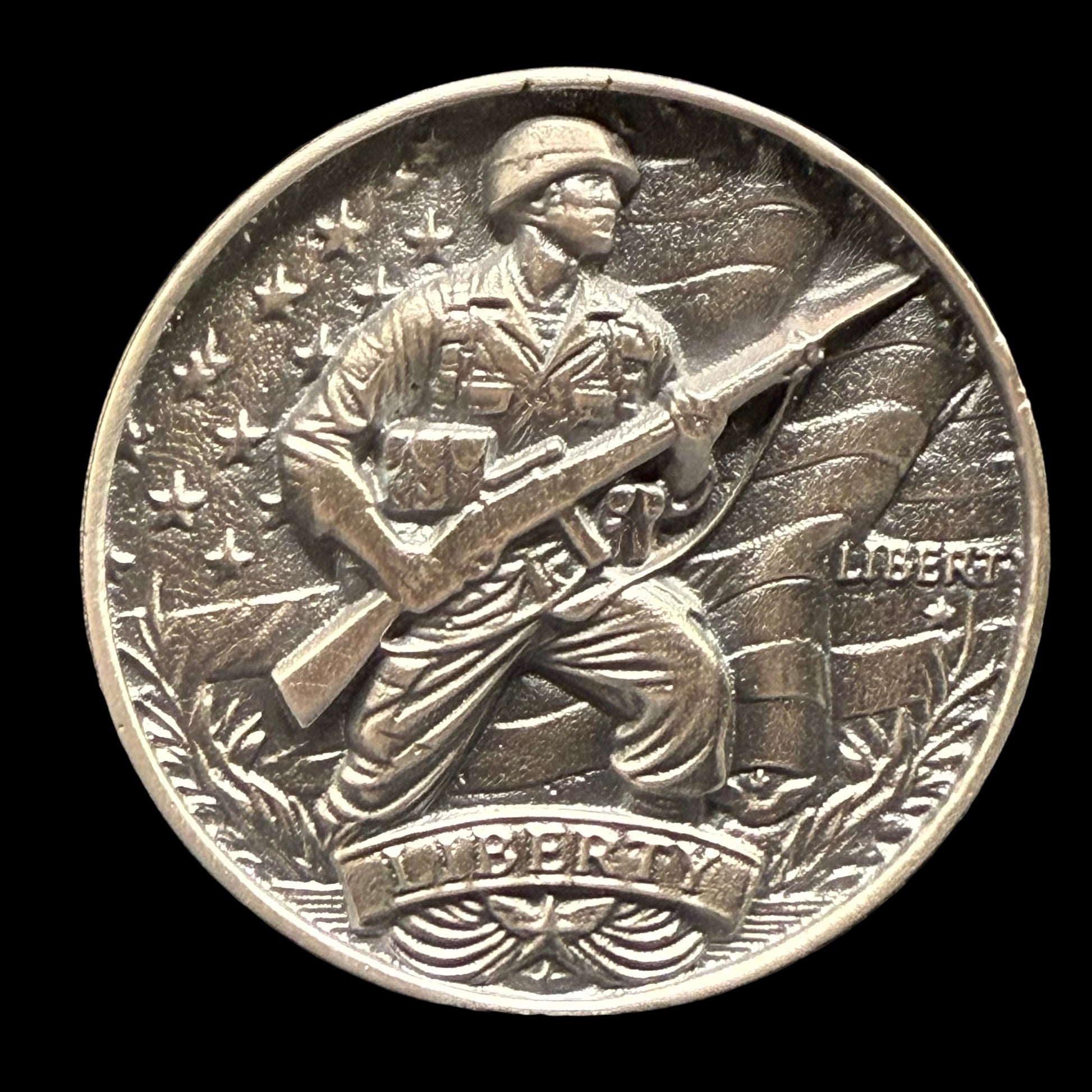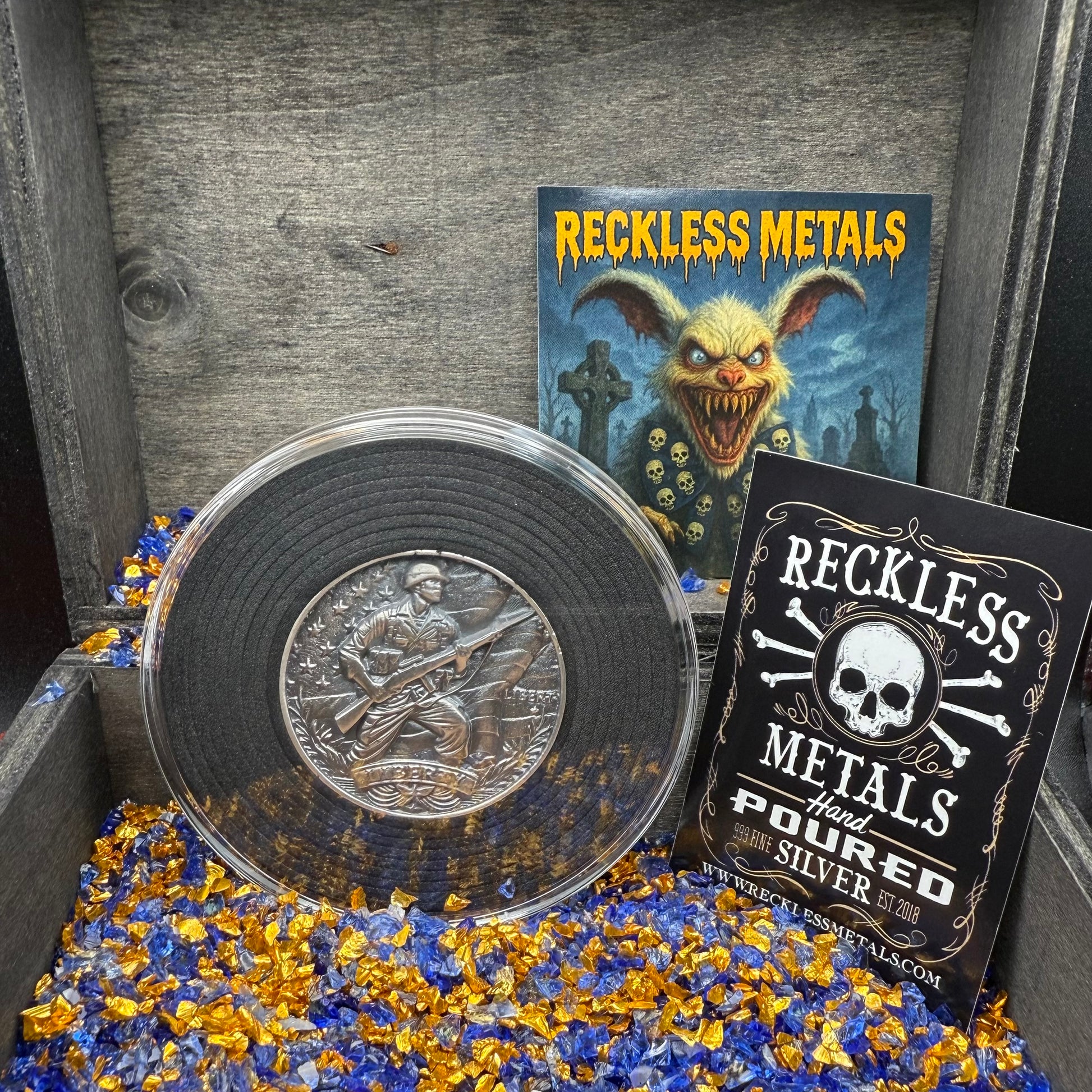 'Defender of Liberty' Hand Crafted by Reckless Metals 1.4 oz .999 Fine Silver Round Antique Finish Includes Wood Treasure Chest, Capsule & COA Mint Condition Limited Edition 1 of 61