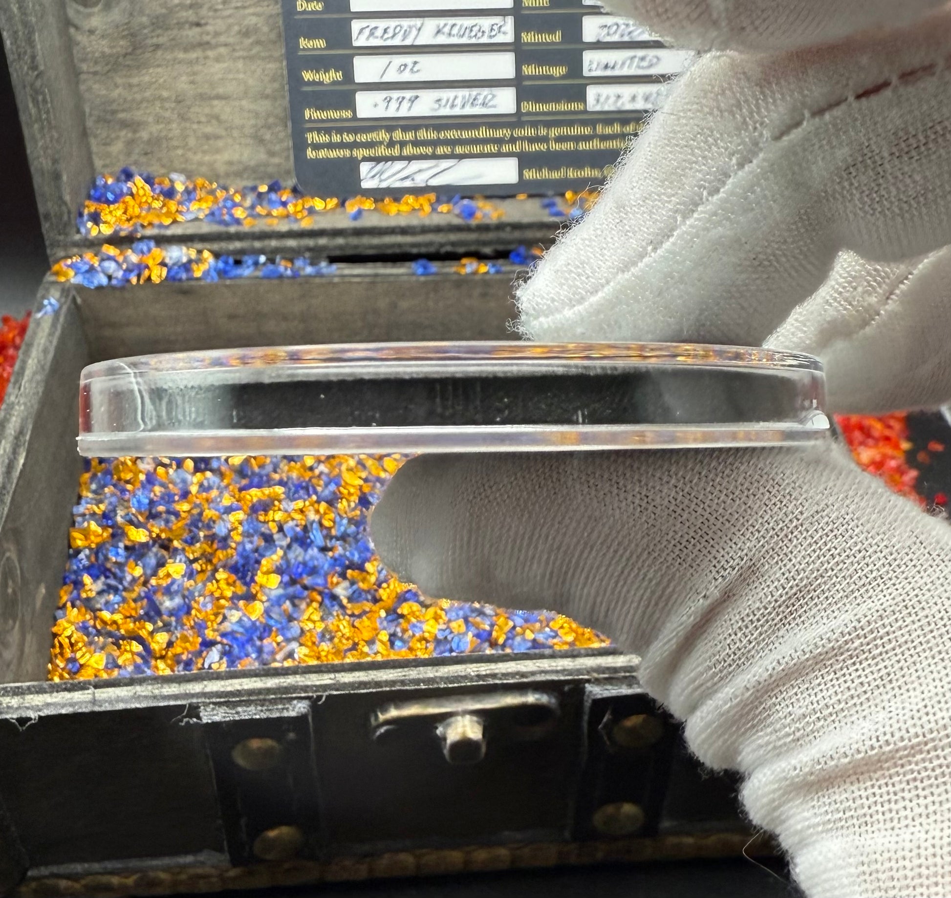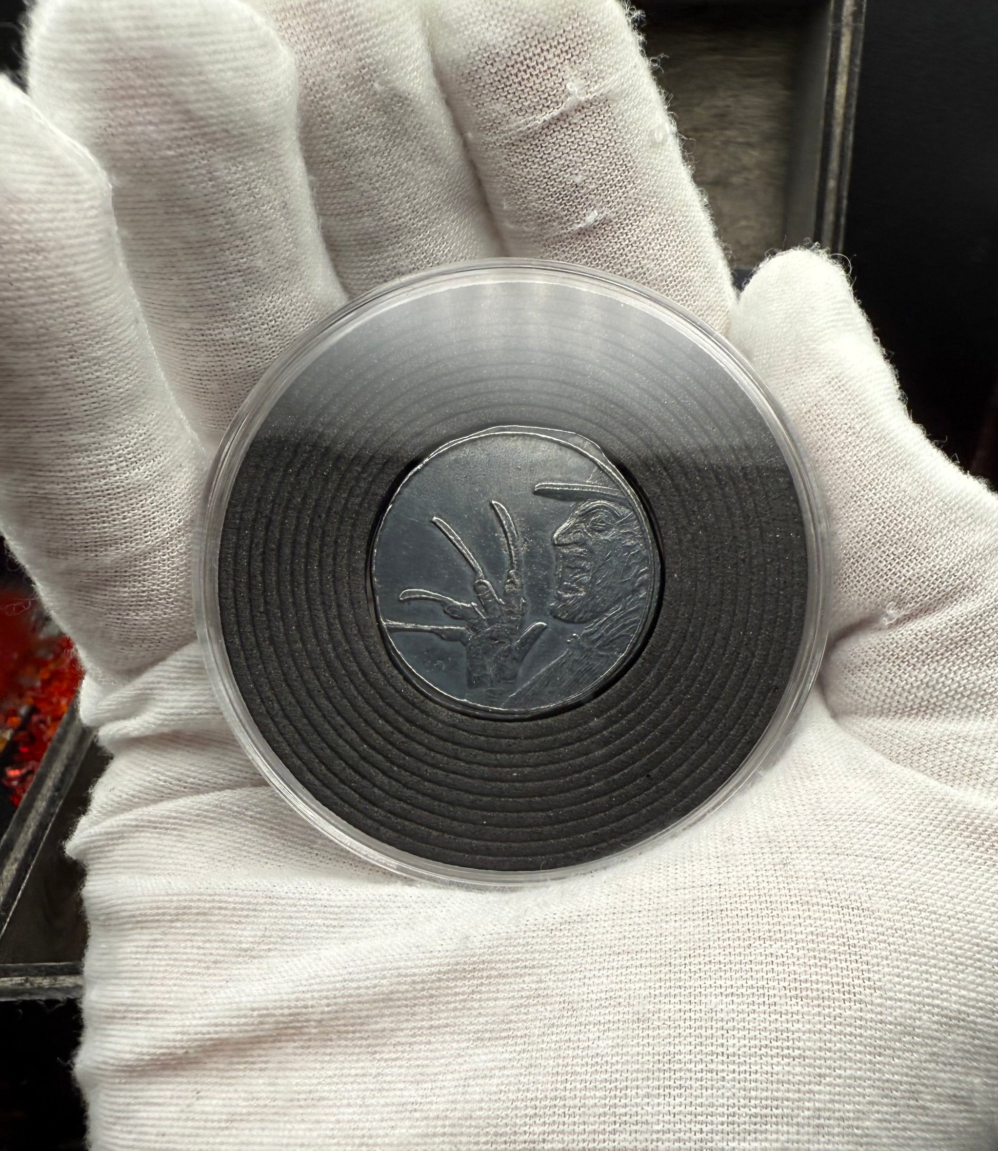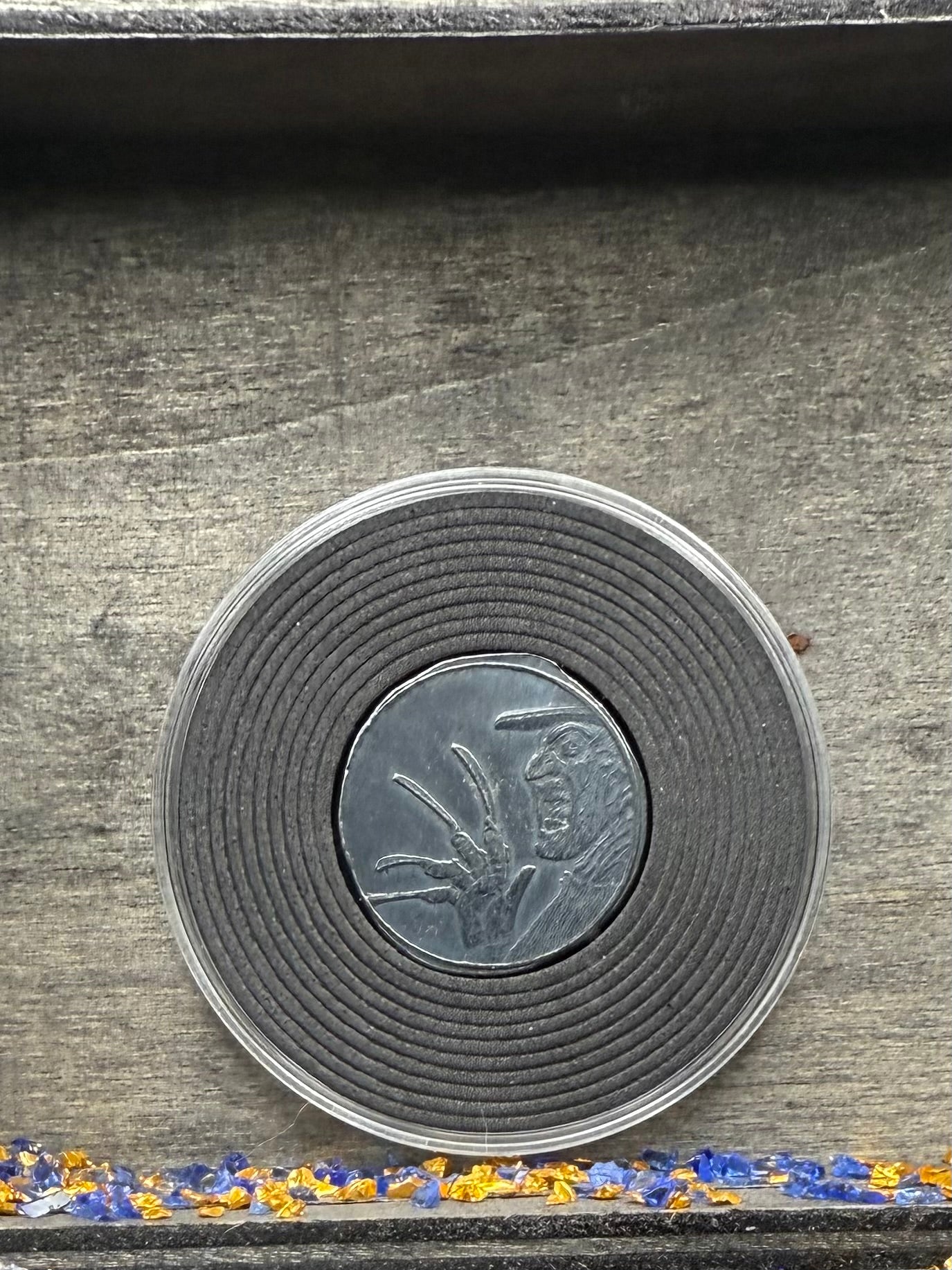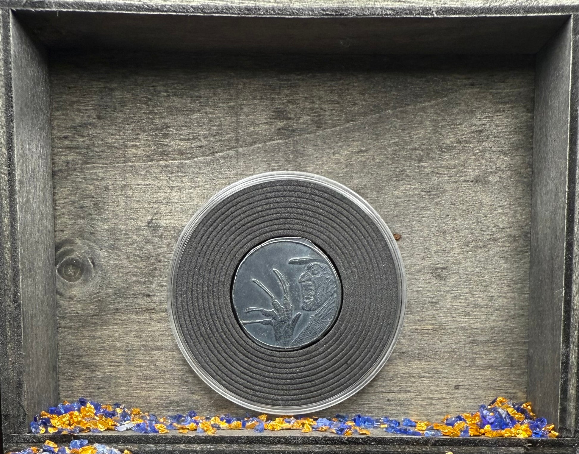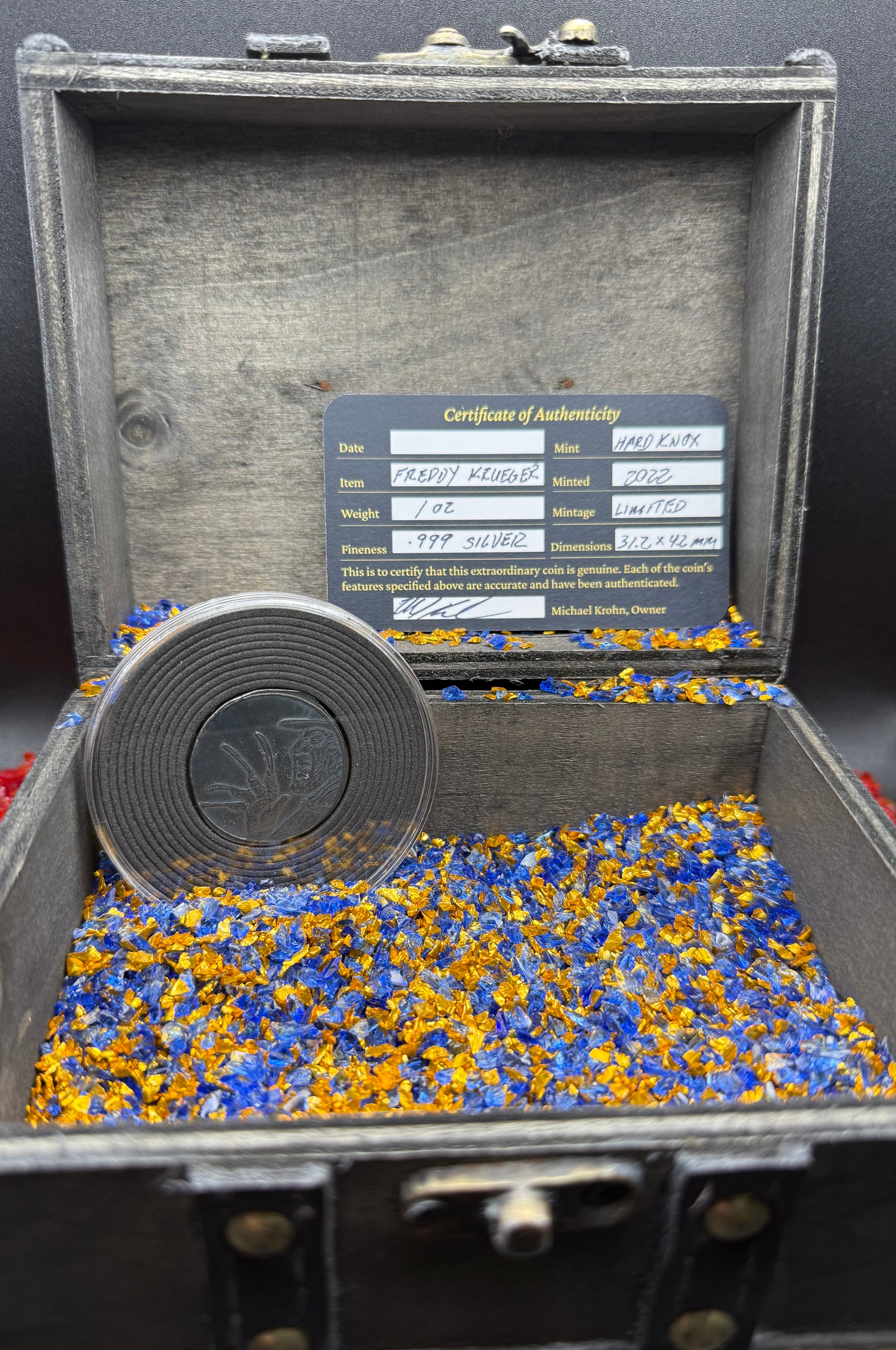 'Freddy Krueger Sweet Dreams' Hand Crafted by Hard Knox Metals 1 oz .999 Fine Silver Round Oxidized Finish Includes Wooden Treasure Box, Capsule & COA Limited Edition